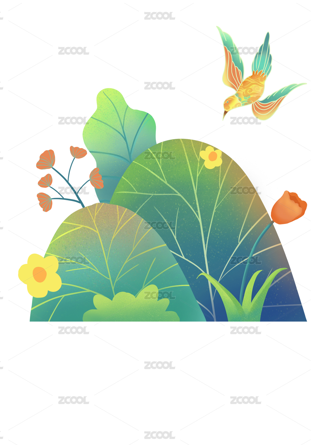 手繪國風插畫素材燕子油紙傘荷花柳枝