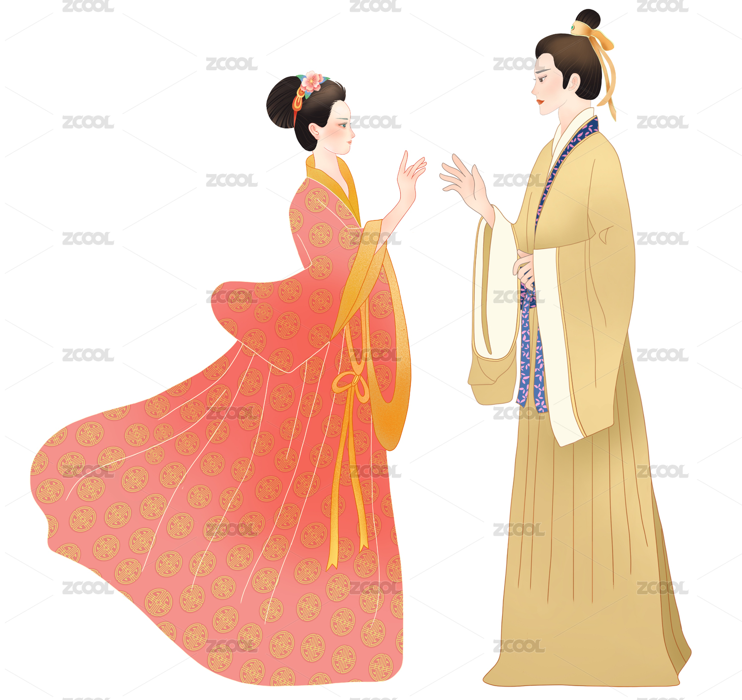 古裝相望的男女中國風插畫素材