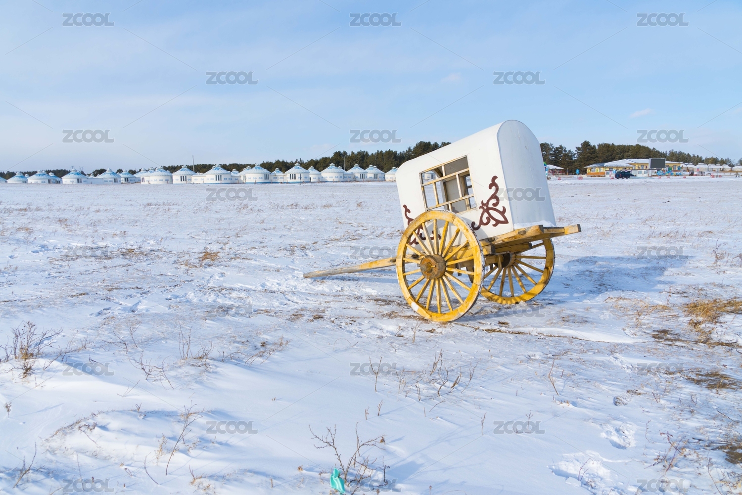 中國內(nèi)蒙古呼倫貝爾下雪的草原和蒙古包