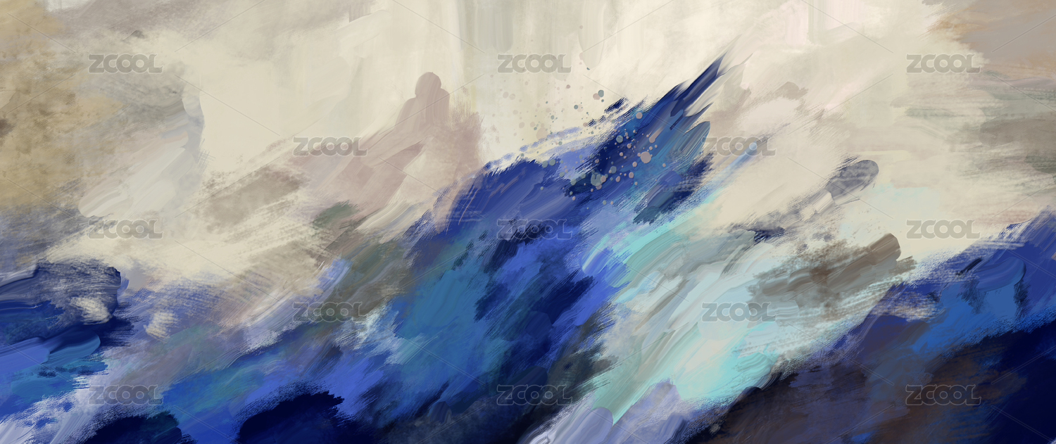 手繪抽象印象油畫寫意冷色調(diào)藝術(shù)背景裝飾畫