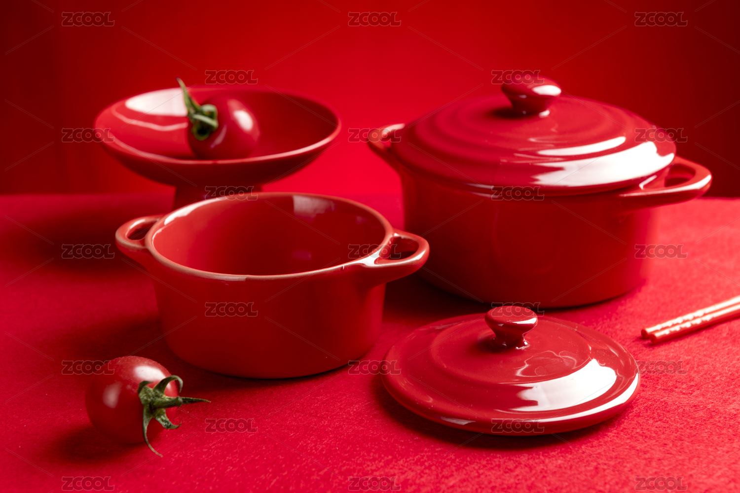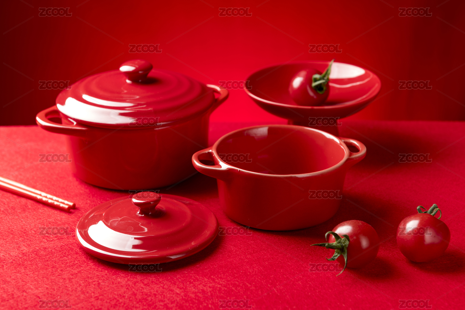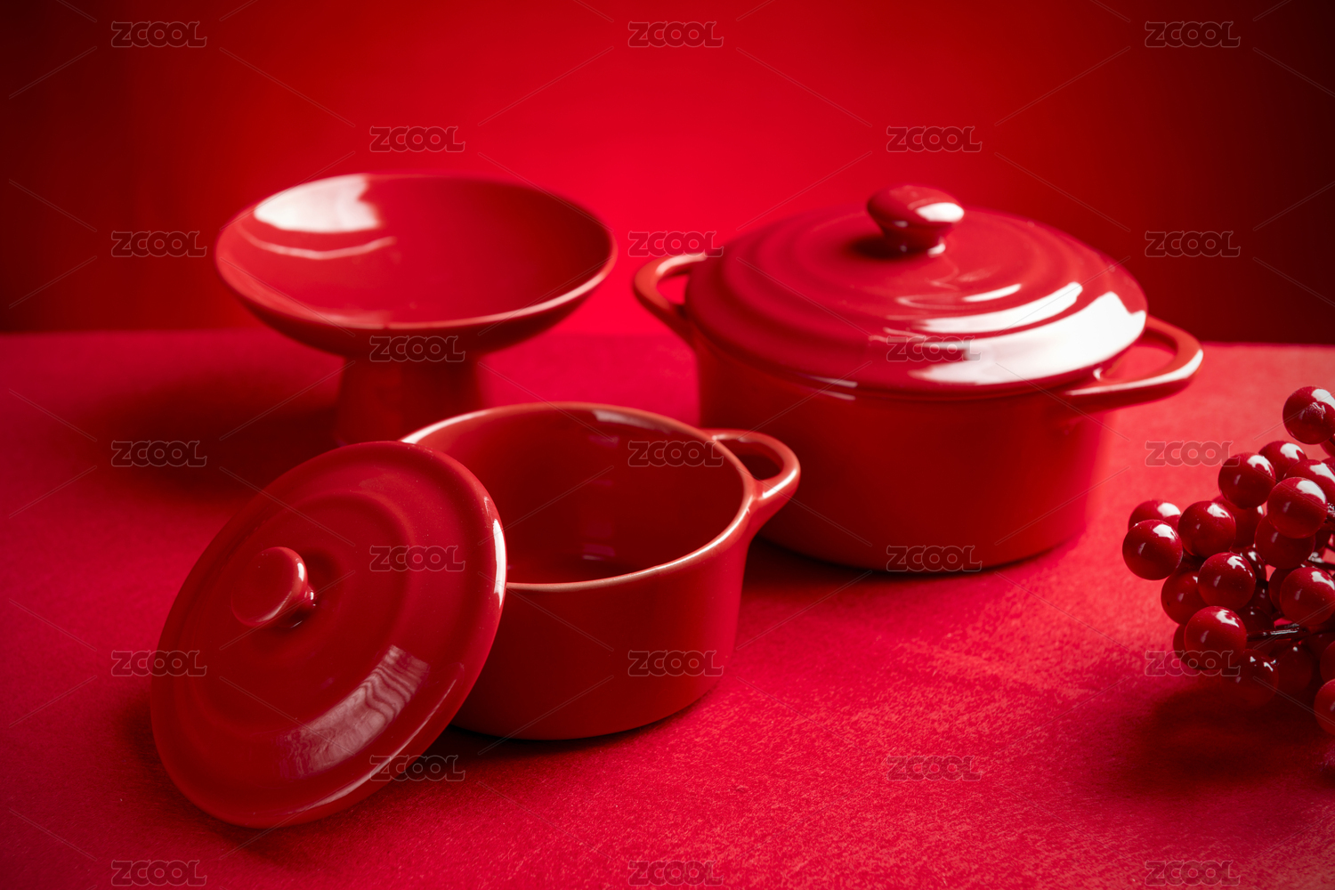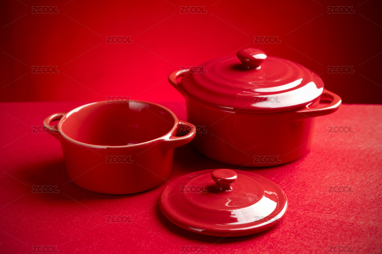 紅色餐具雙耳帶蓋蒸蛋碗特寫