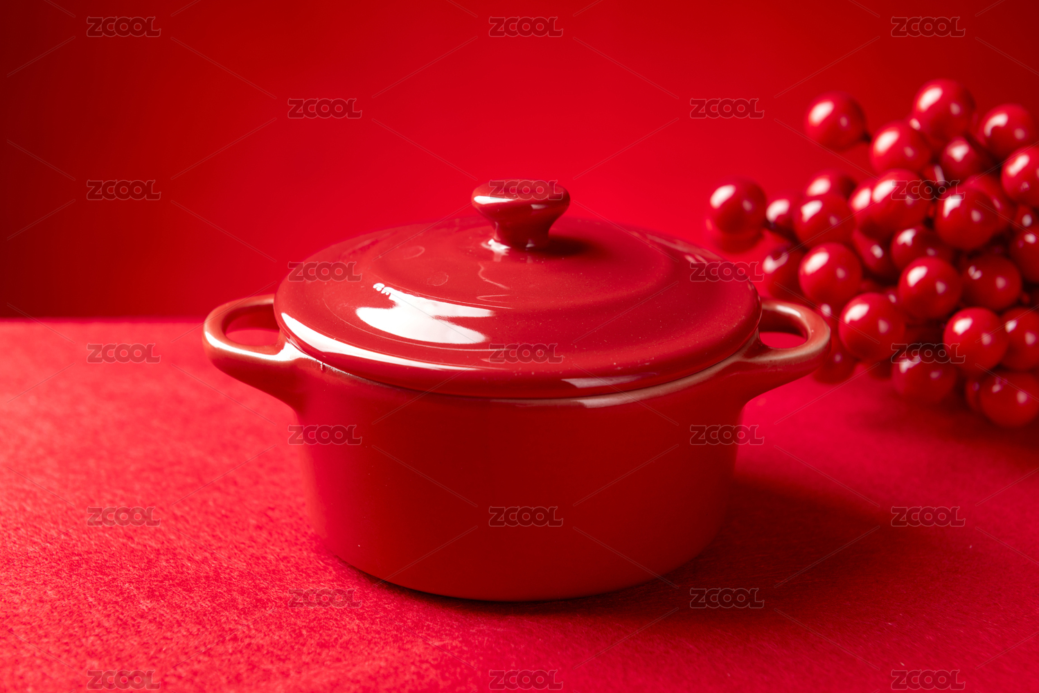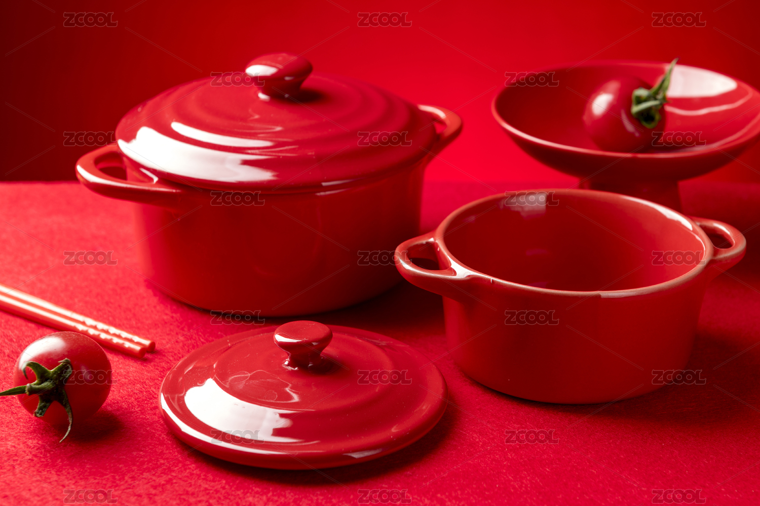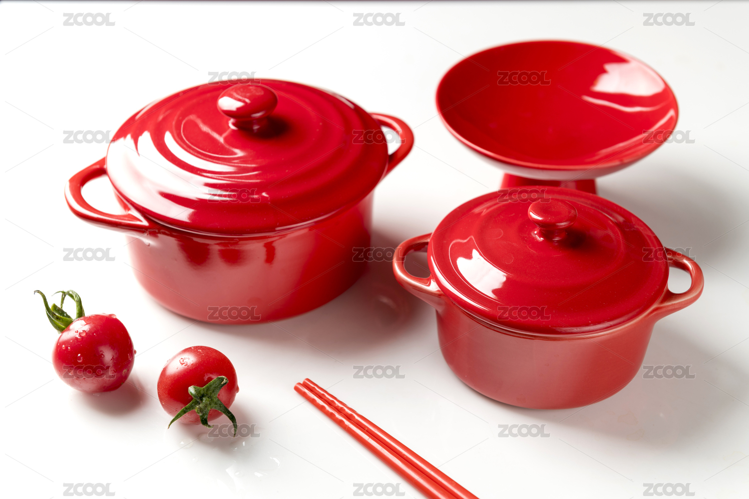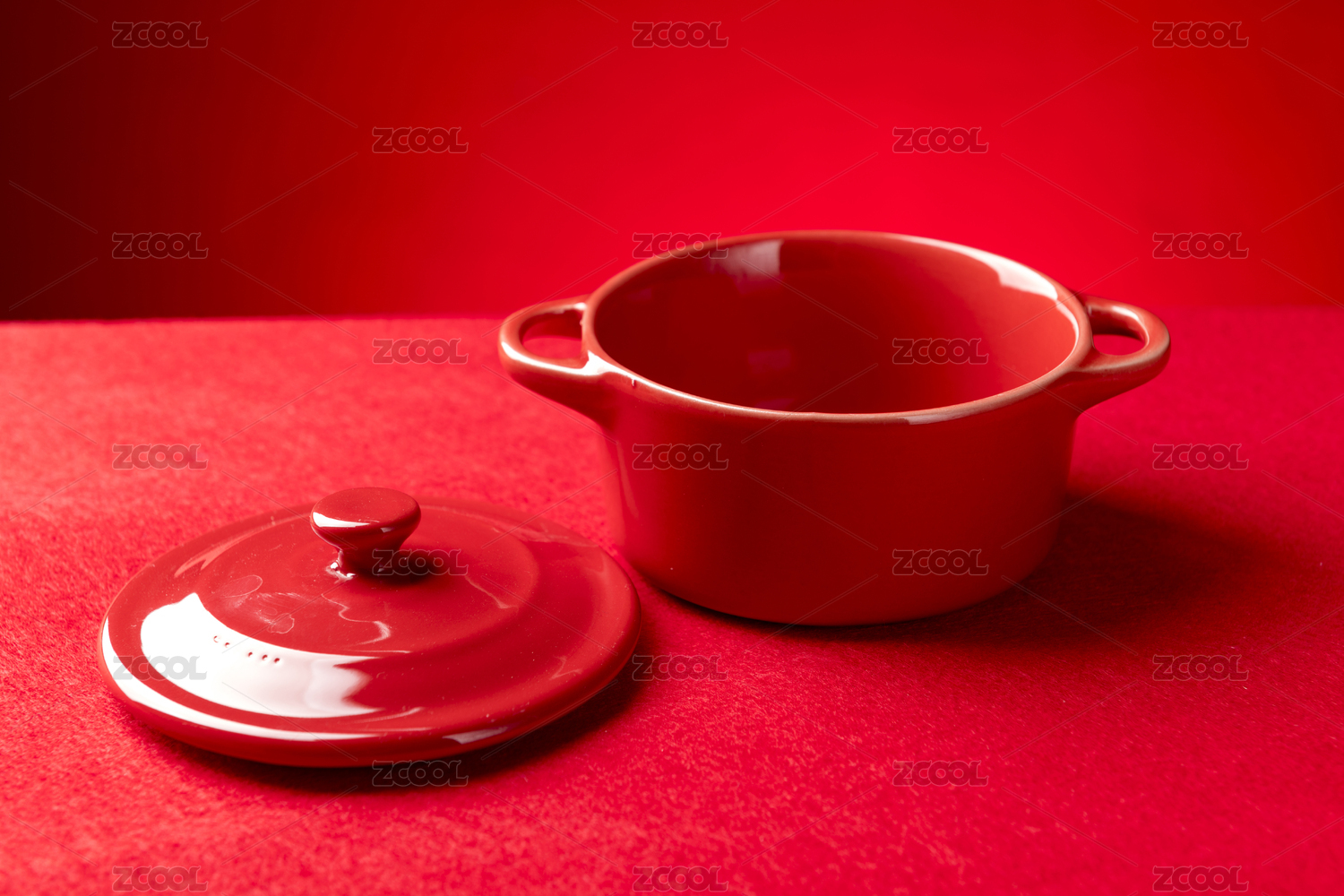 紅色餐具雙耳帶蓋蒸蛋碗特寫