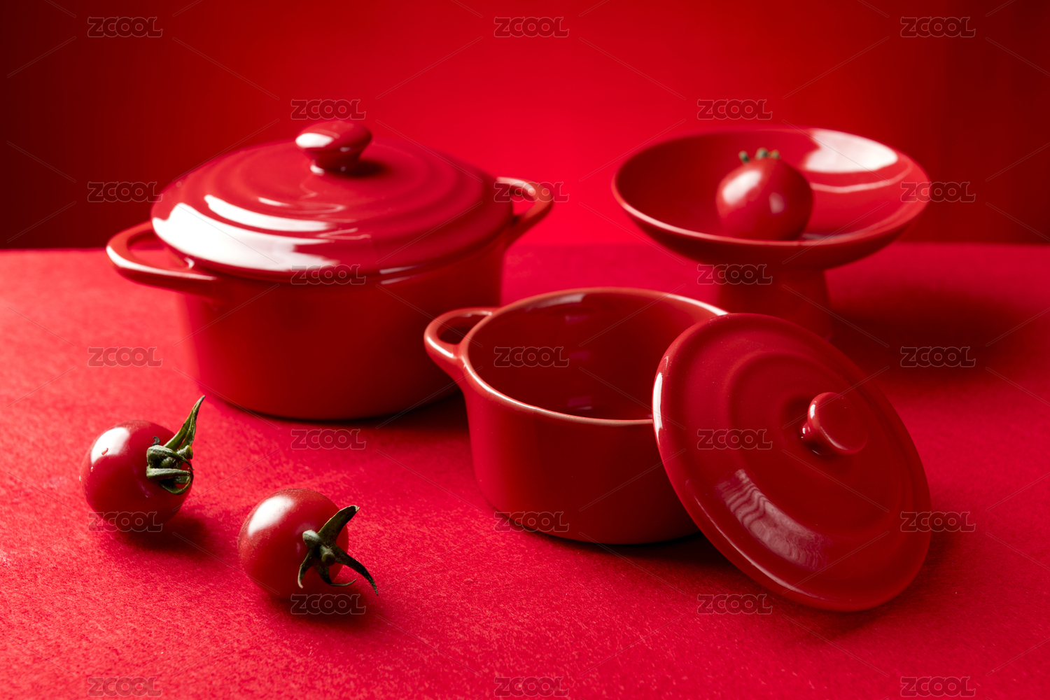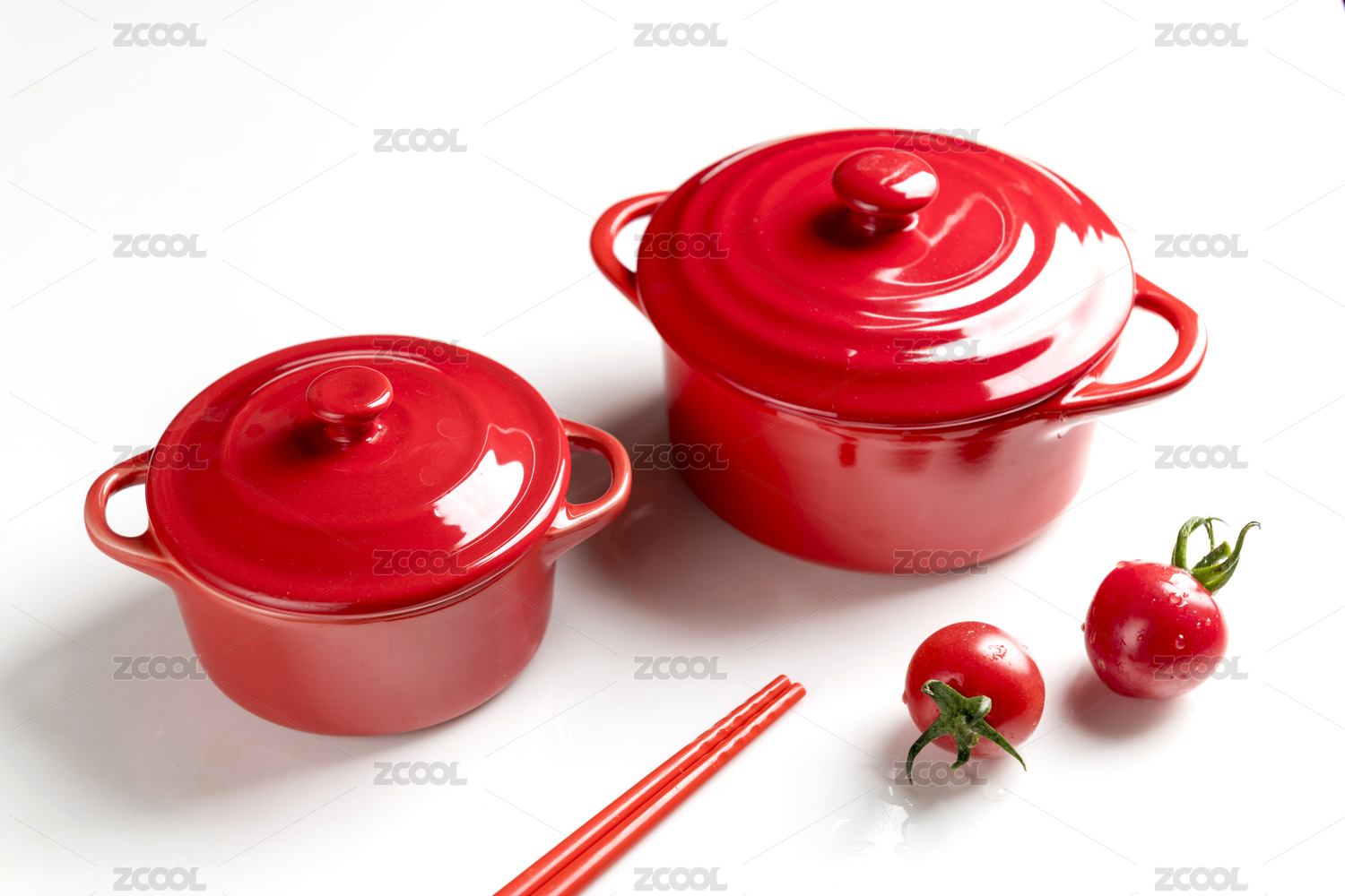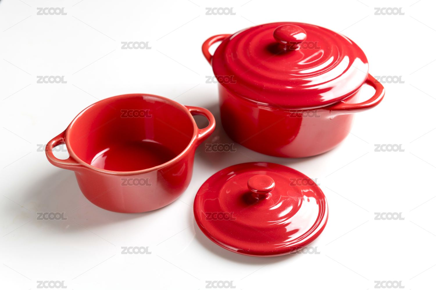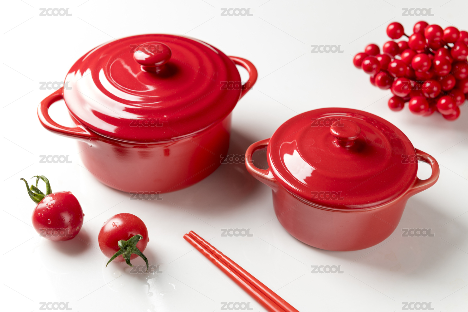 紅色餐具雙耳帶蓋蒸蛋碗特寫