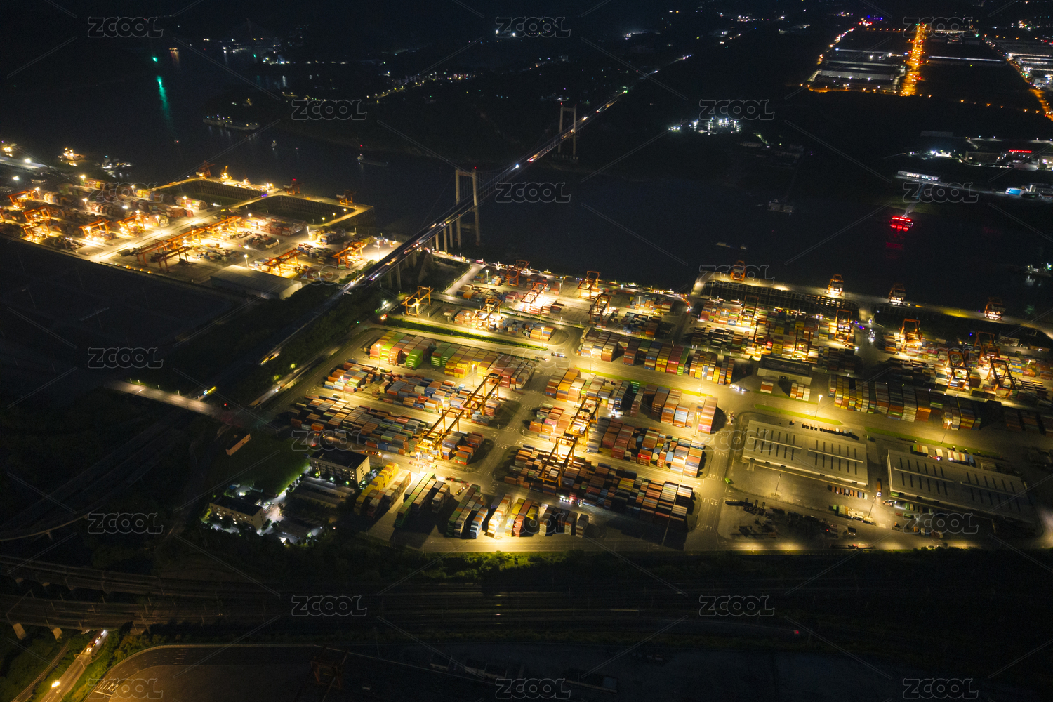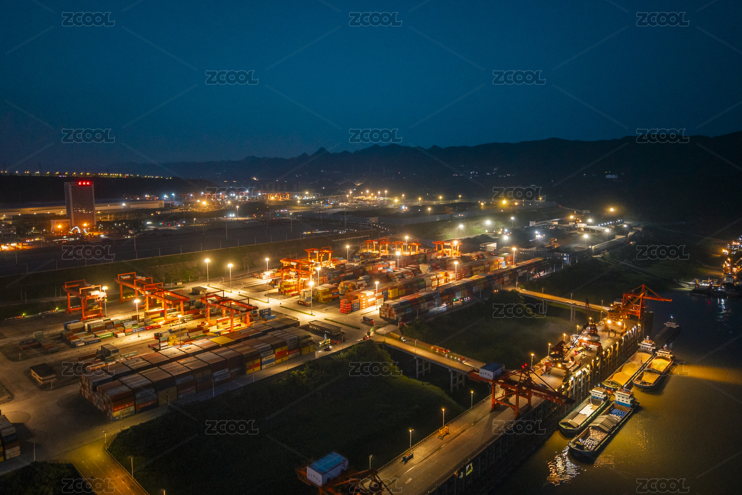 重慶果園港港口岸集裝箱碼頭夜景航拍