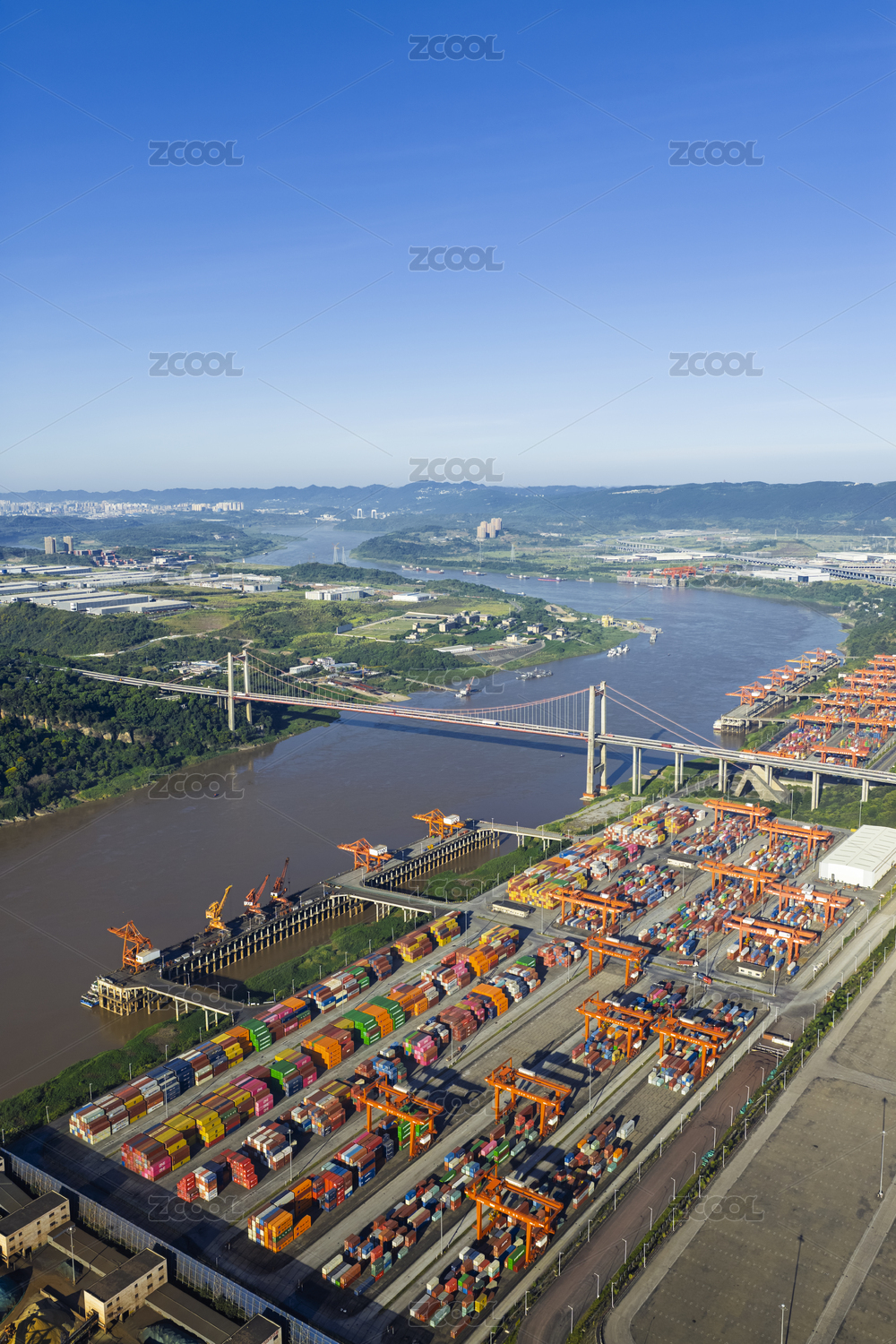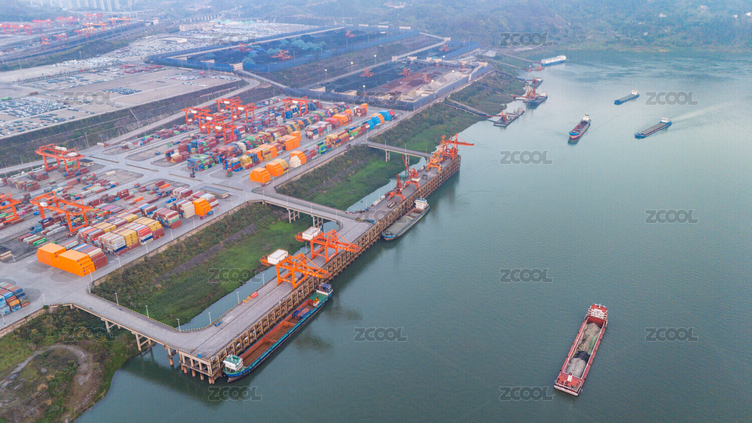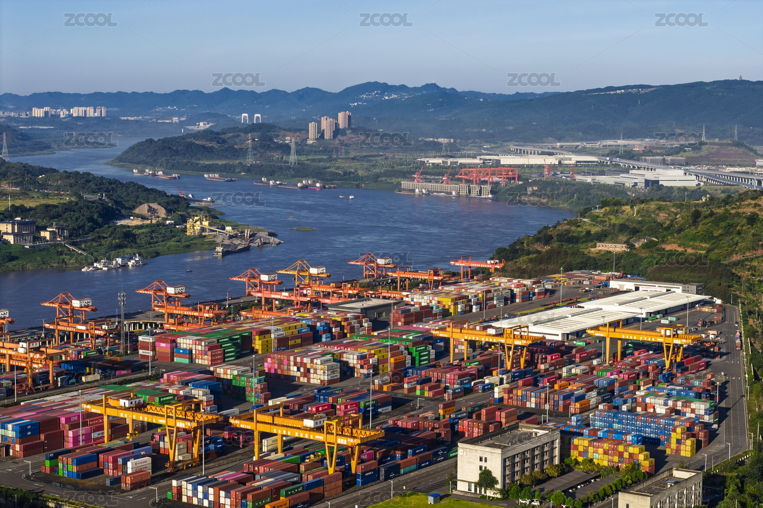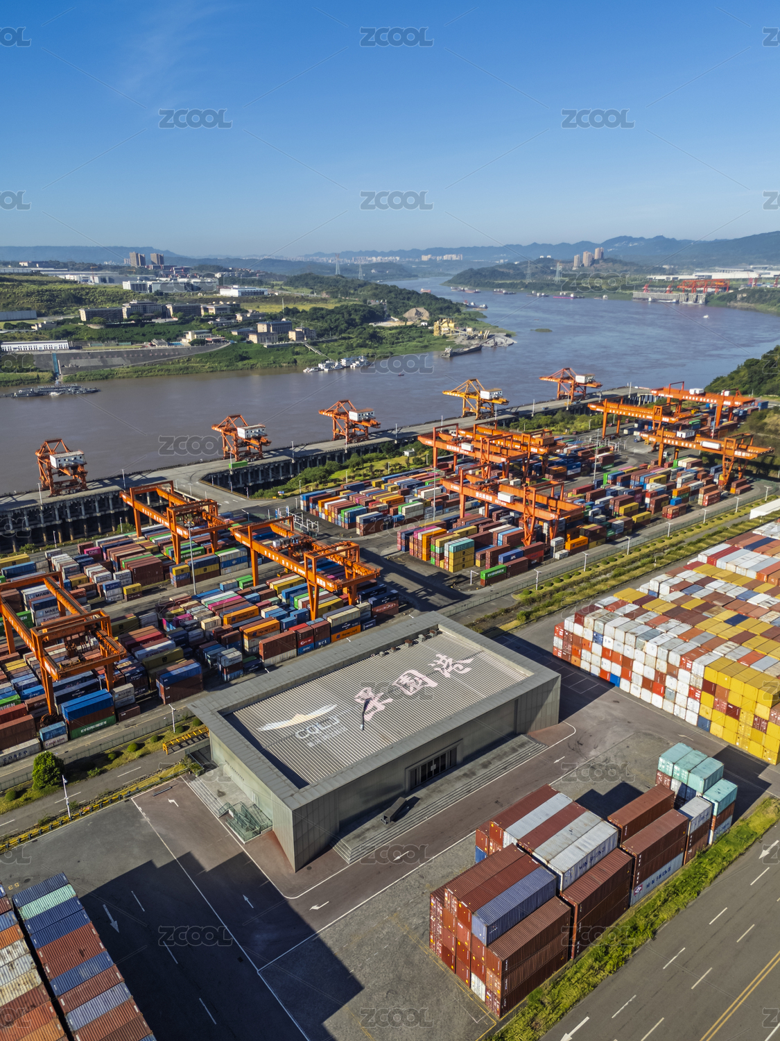 鳥瞰重慶果園港港口岸集裝箱碼頭