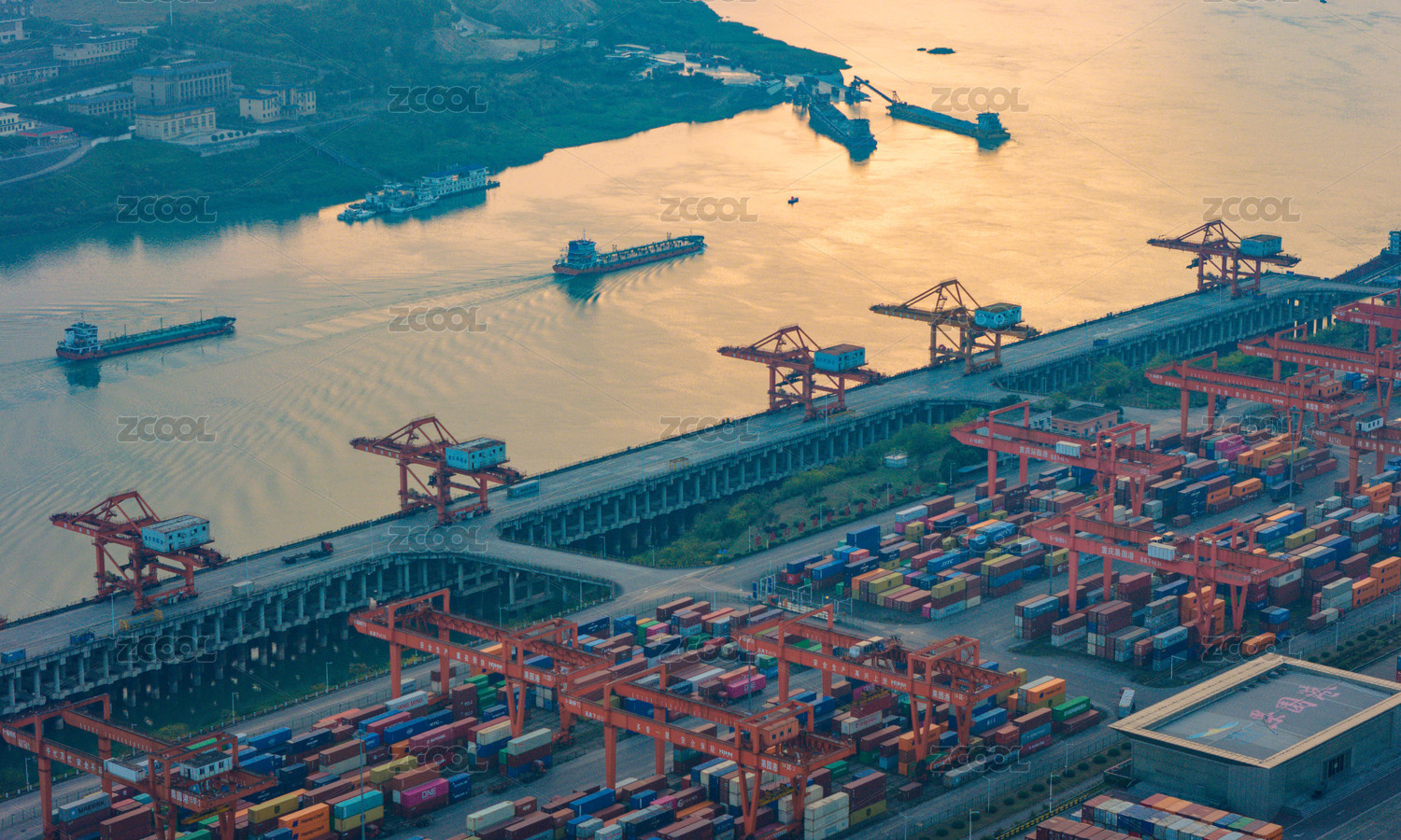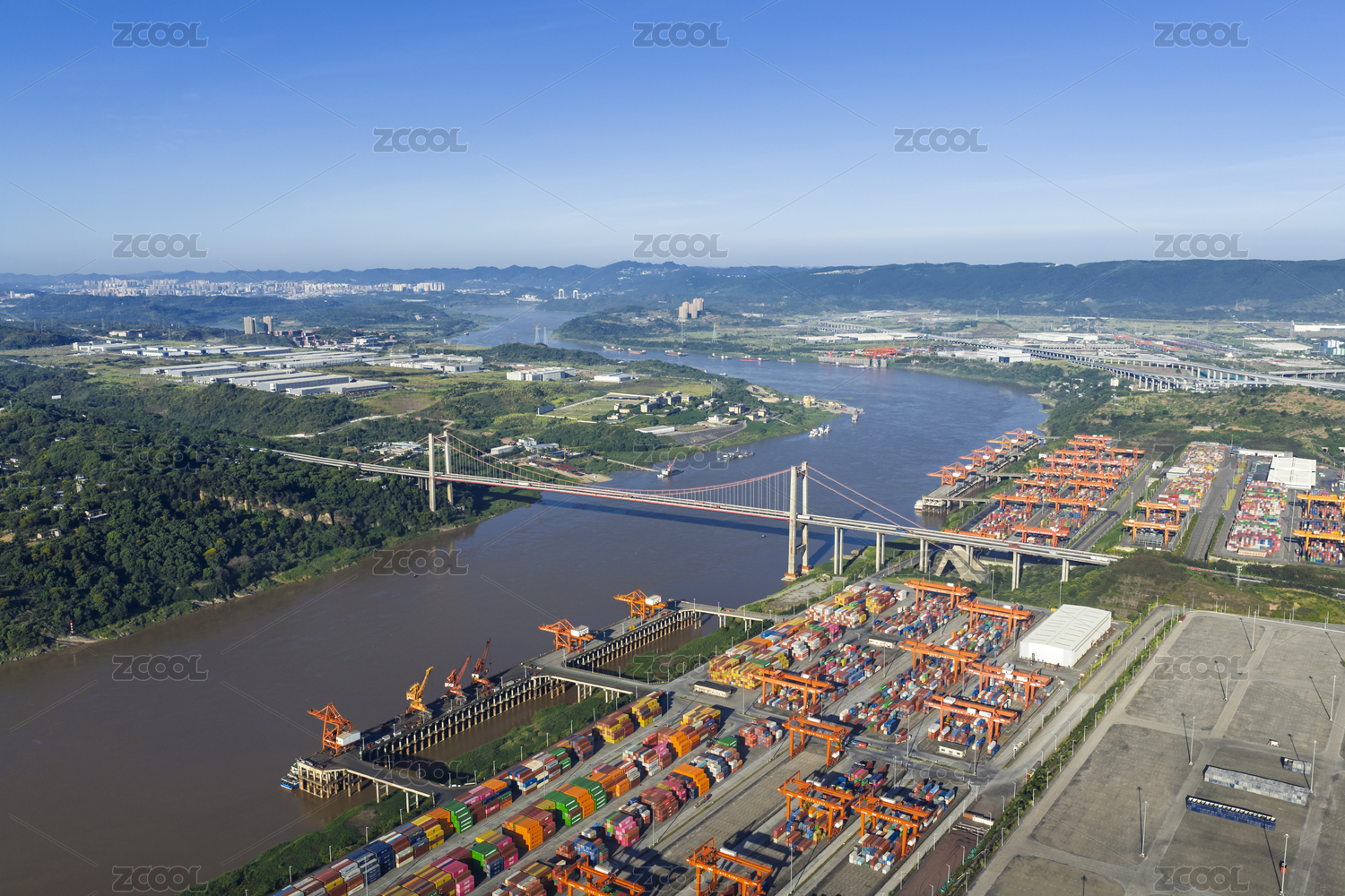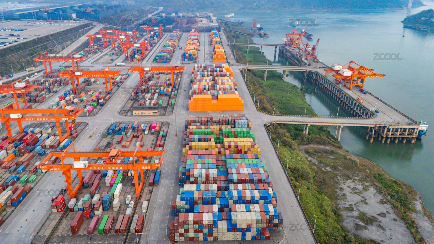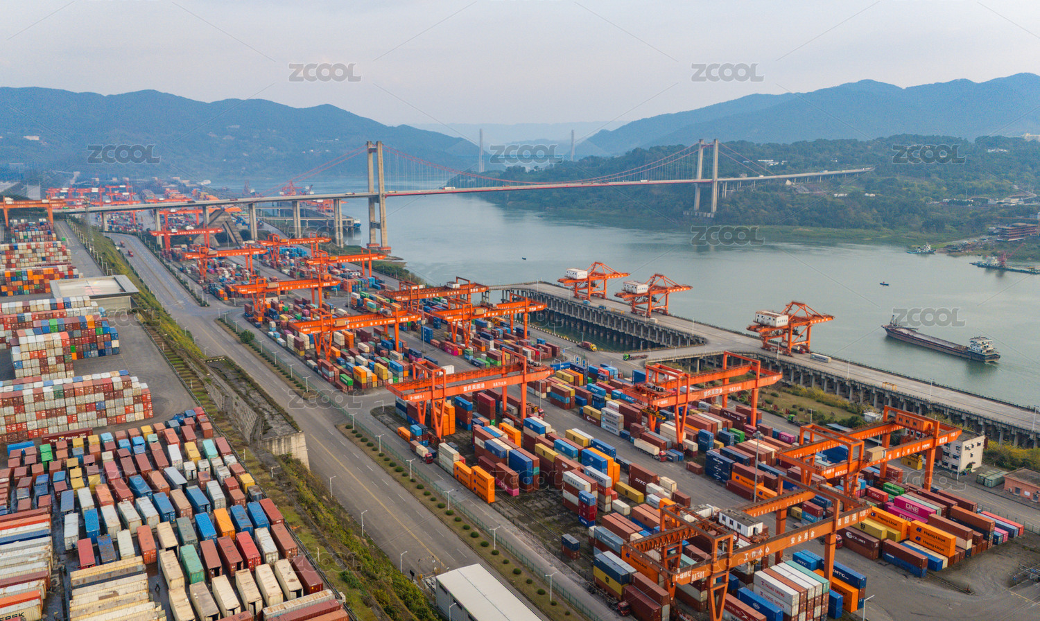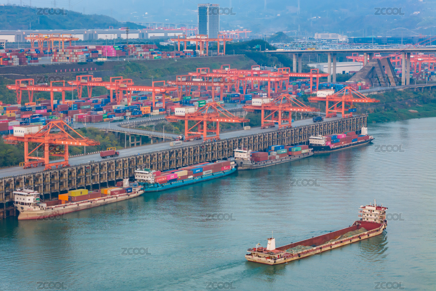 鳥瞰重慶果園港港口岸集裝箱碼頭
