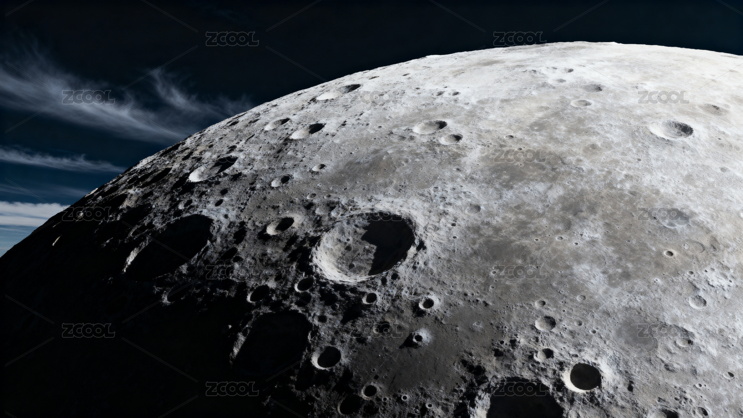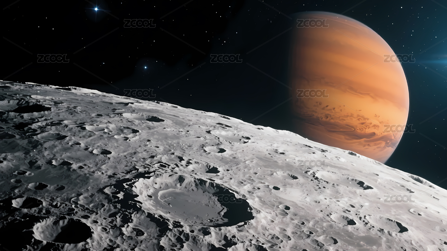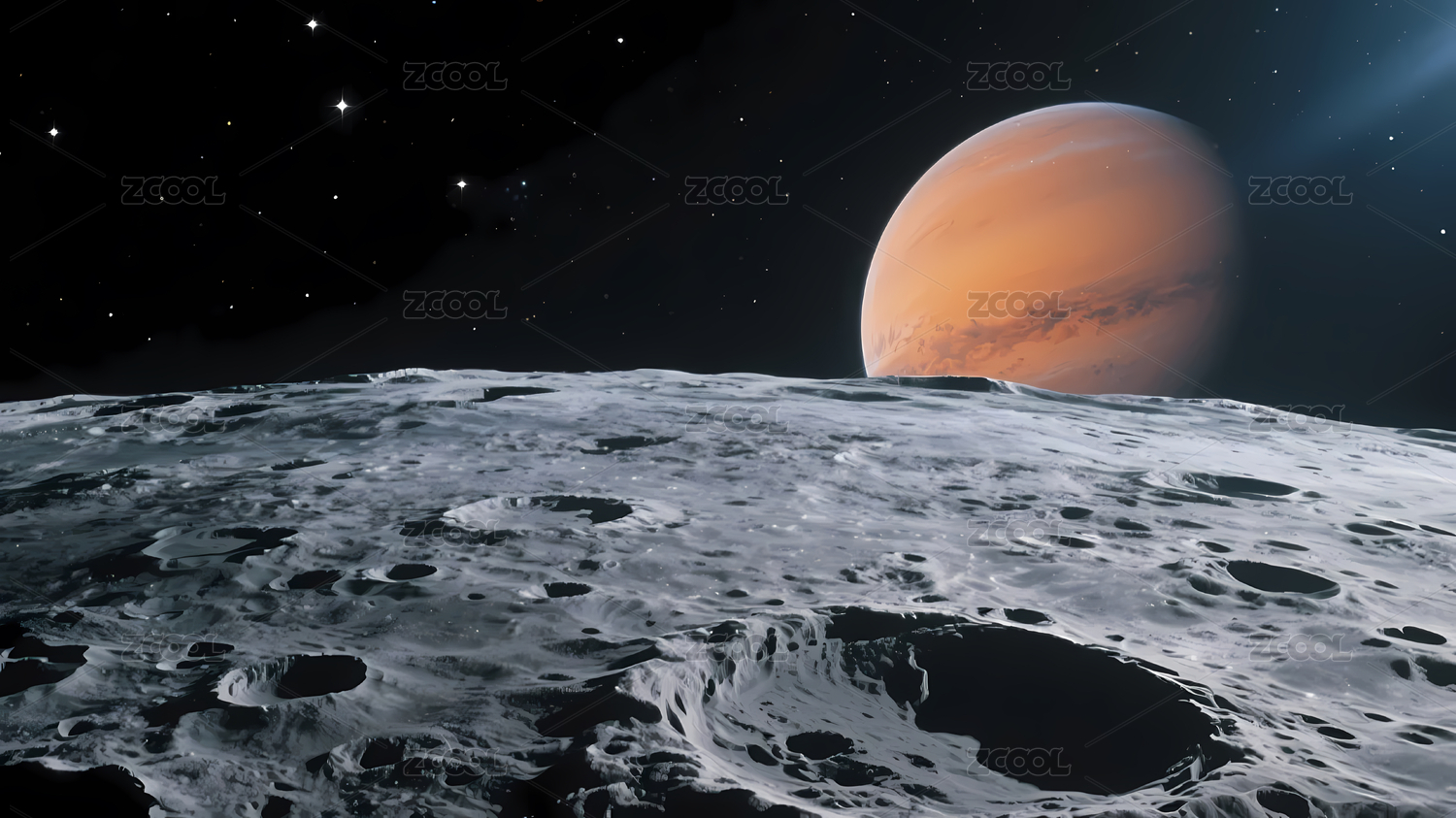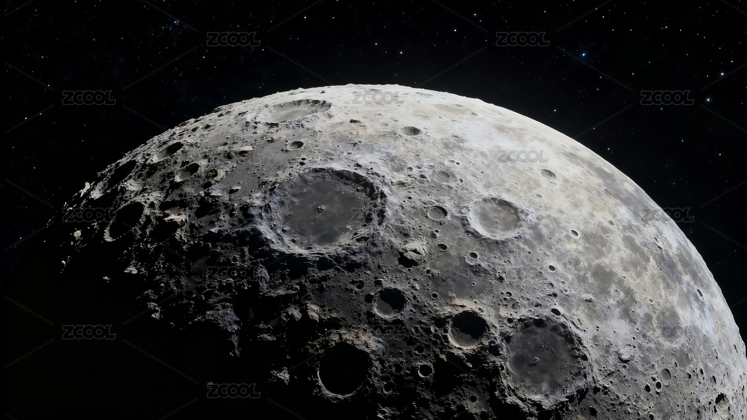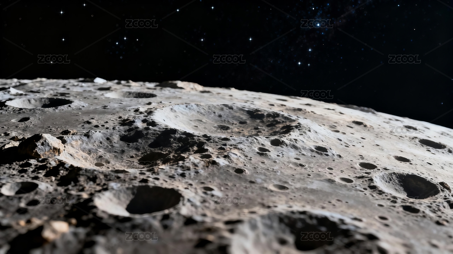 月球表面坑洞密布星空背景