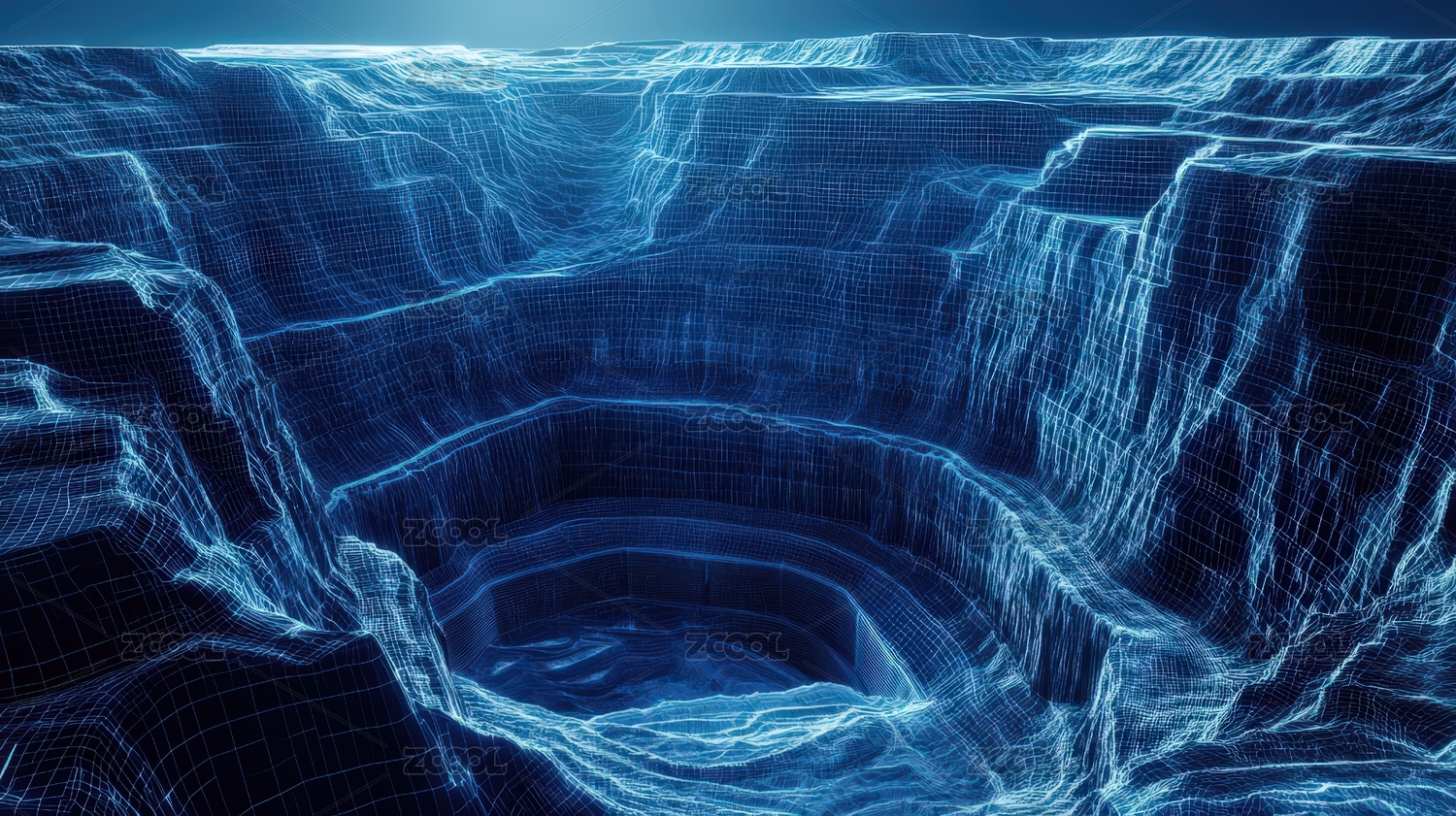 藍(lán)色網(wǎng)格下的深邃坑洞