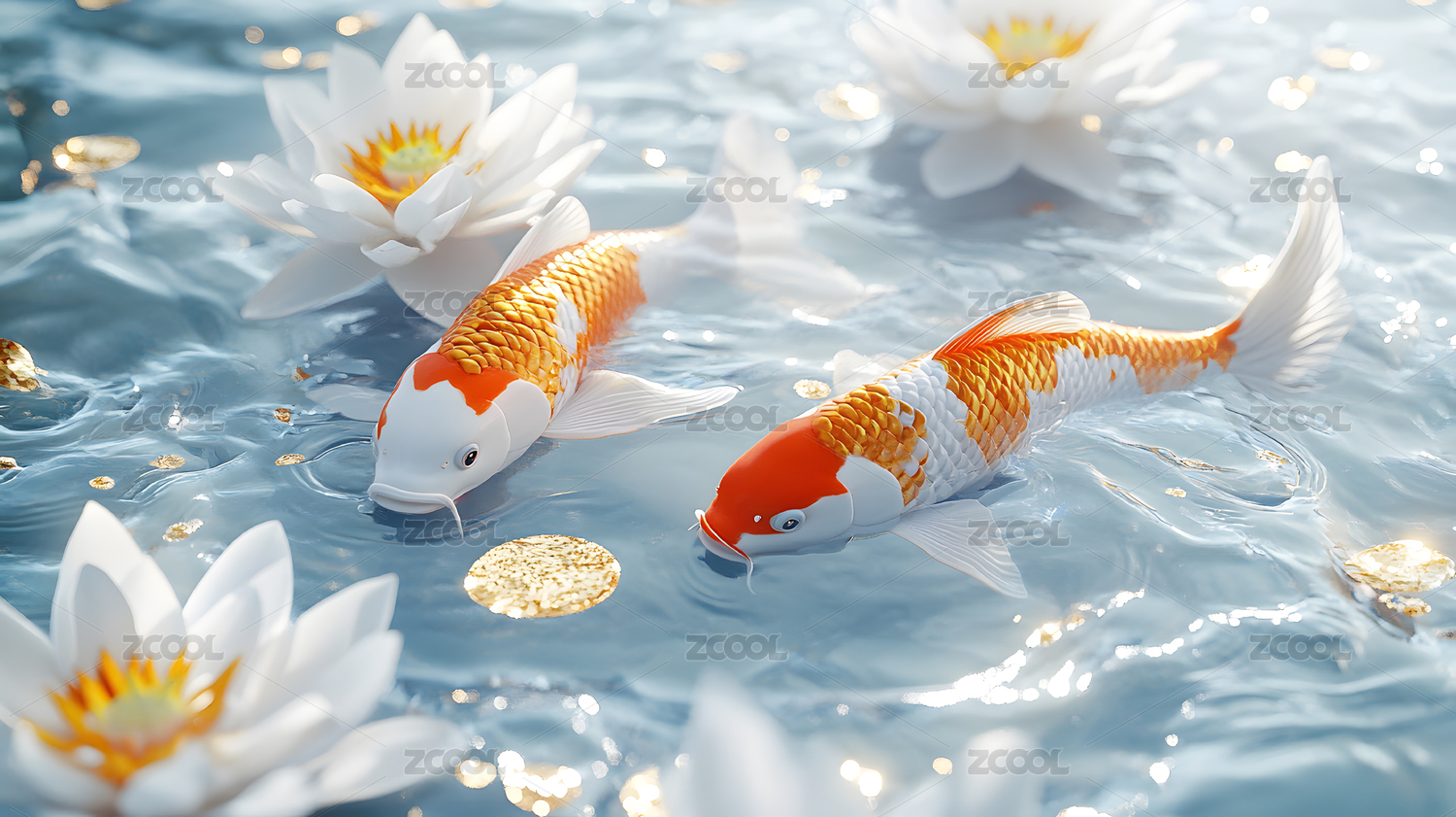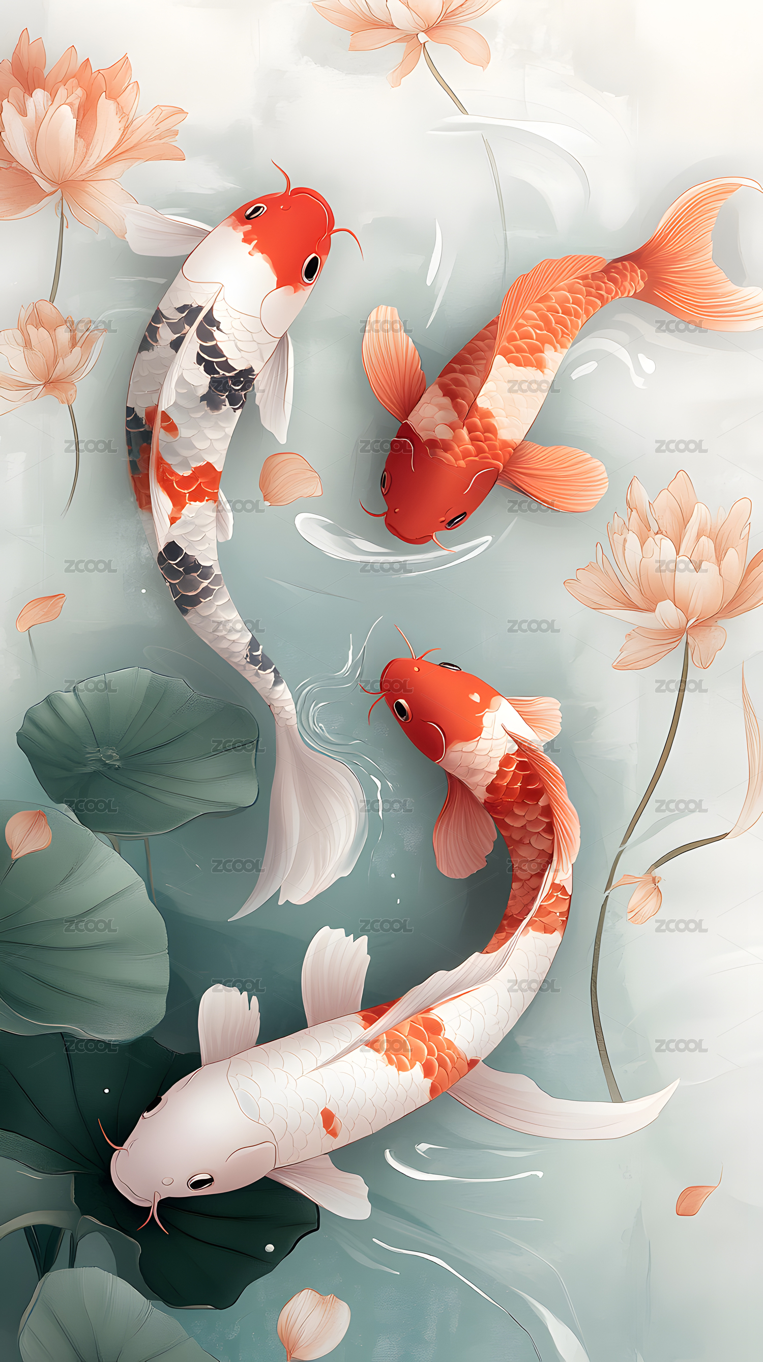 高清Koi魚3D立體藝術(shù)圖