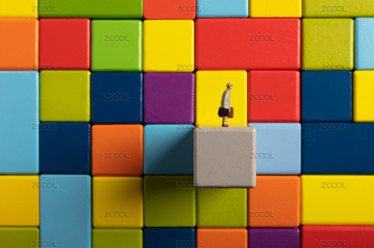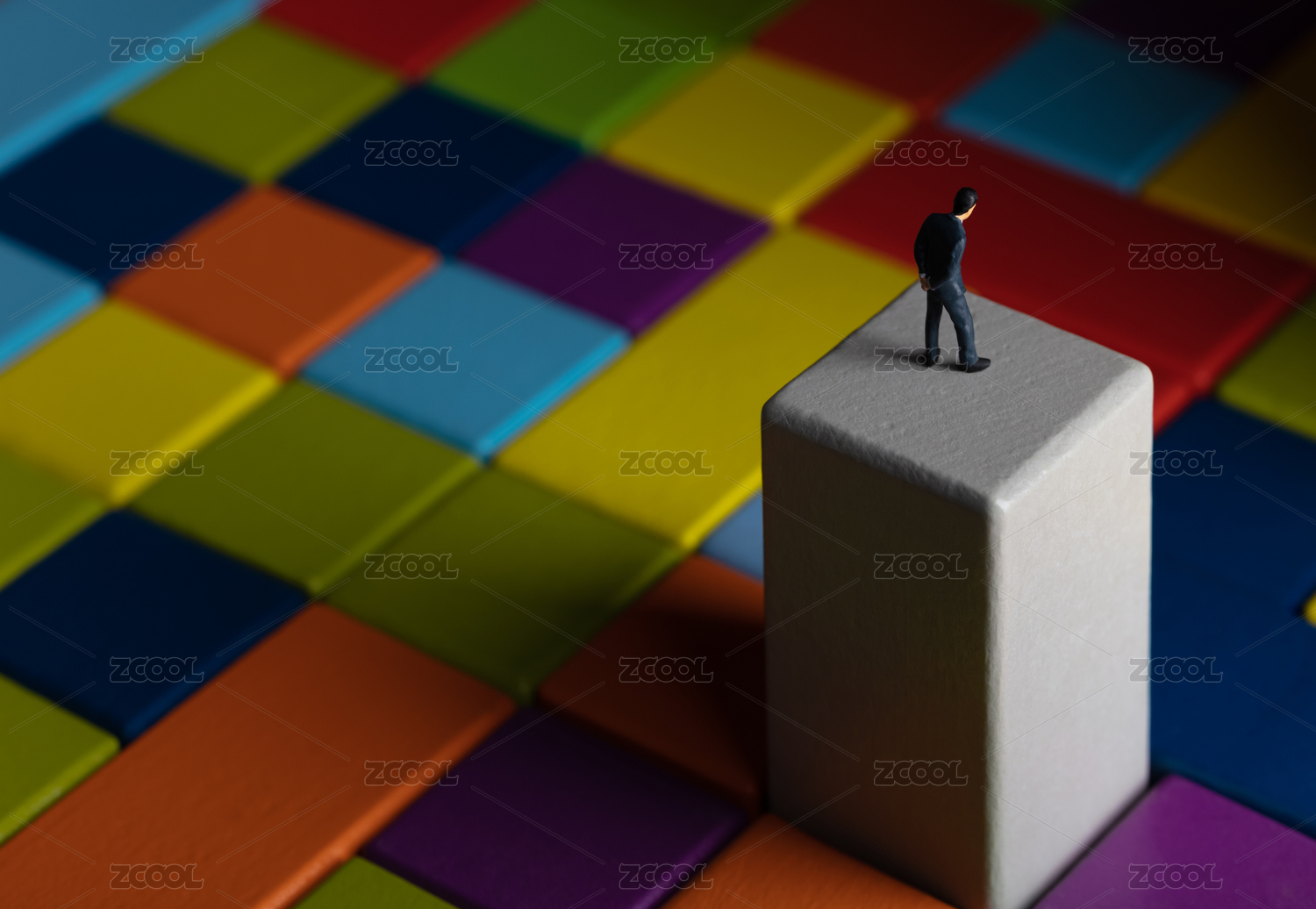 五顏六色的積木城市孤獨的商務男思考