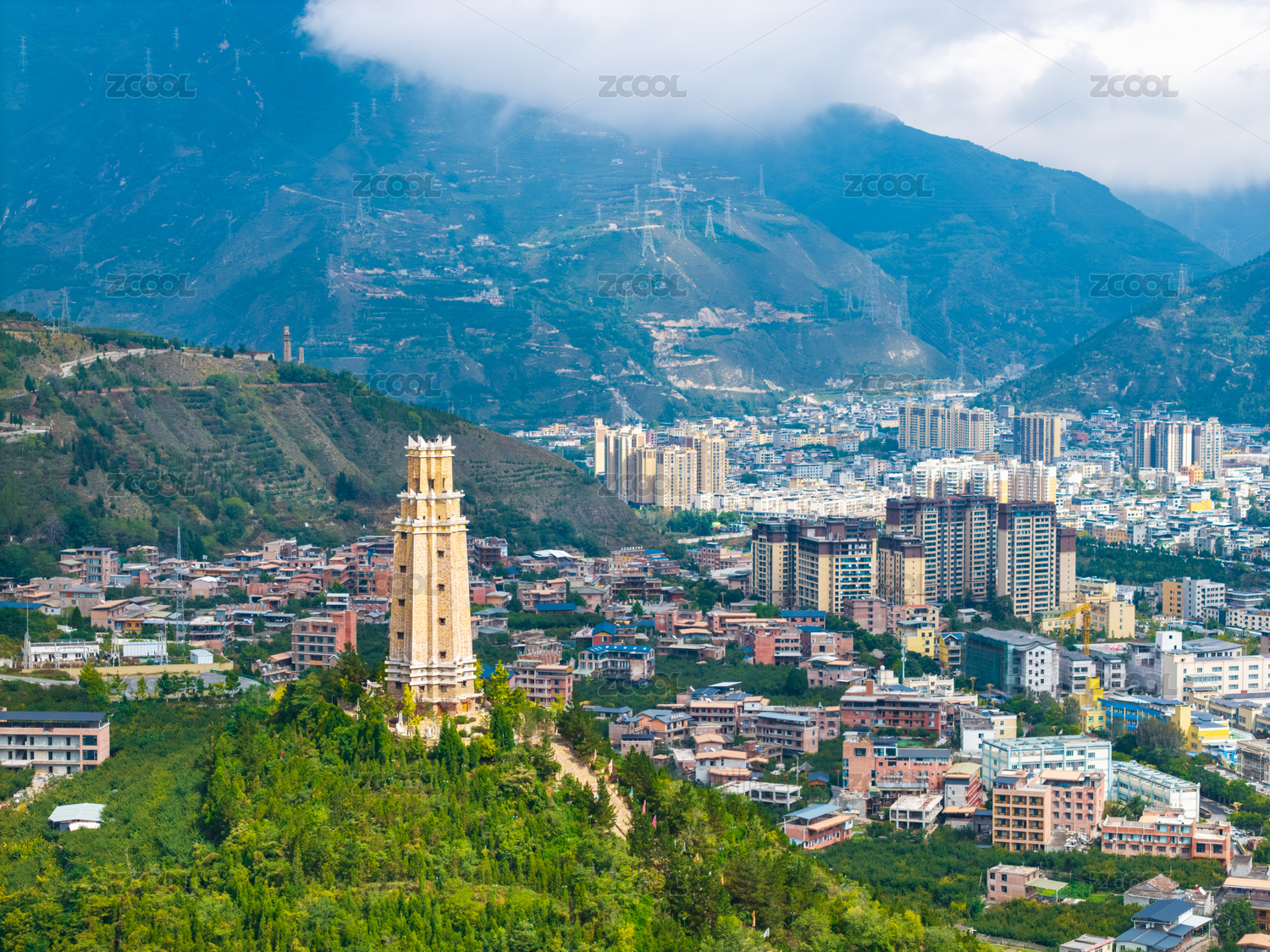 山丘和樹木城市景觀