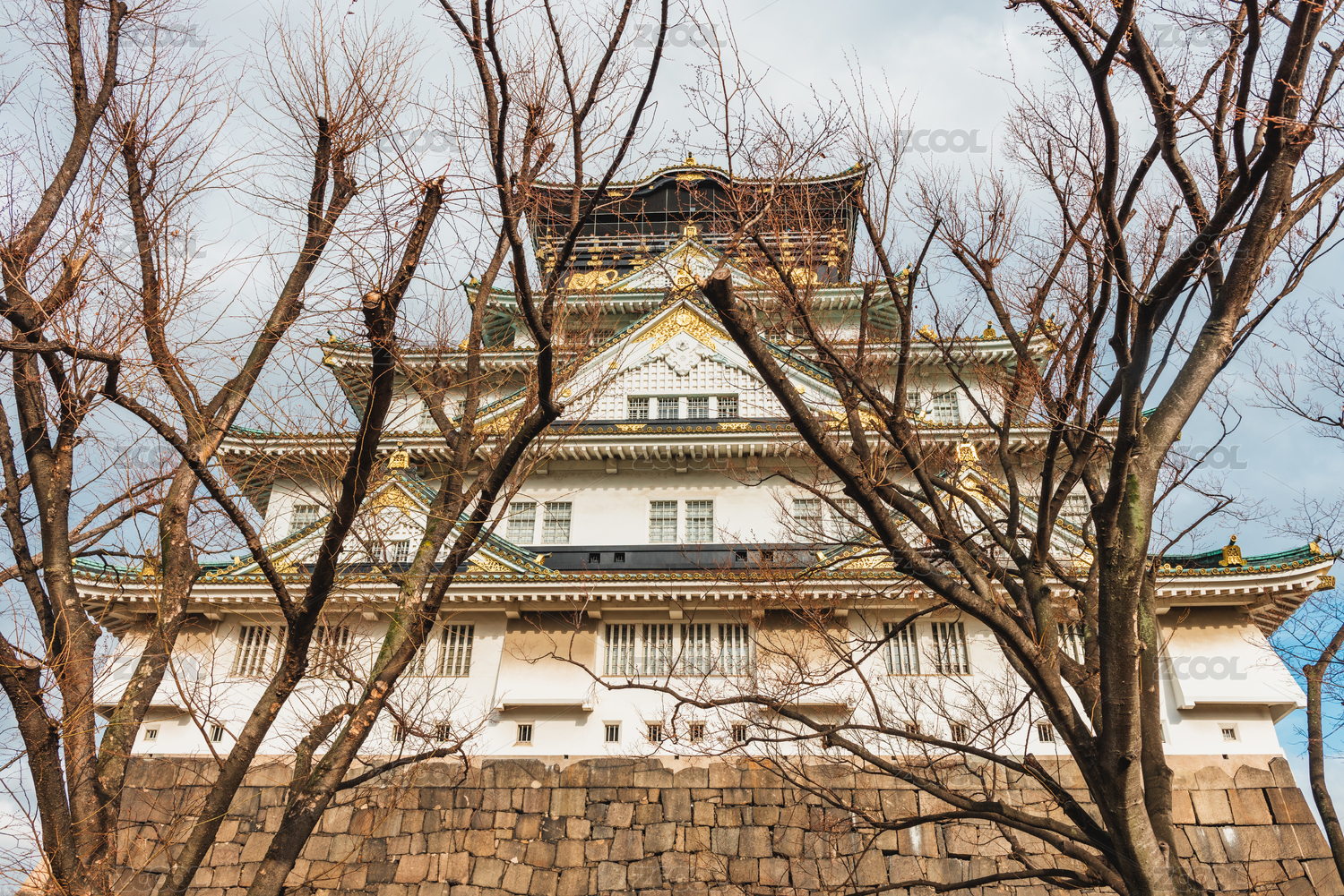 大阪城前面有兩棵樹木