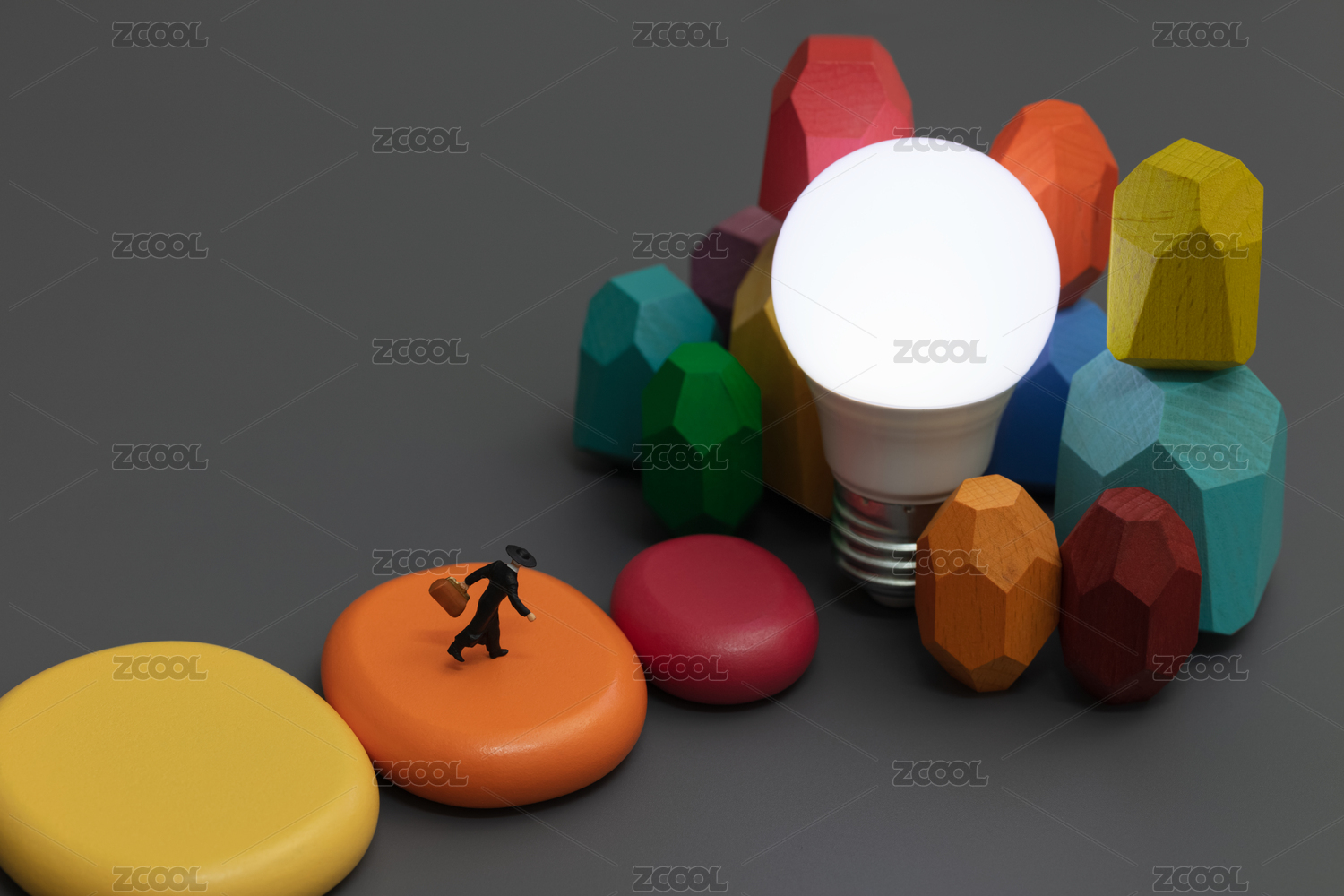 微縮創(chuàng)意彩色積木城堡與燈泡