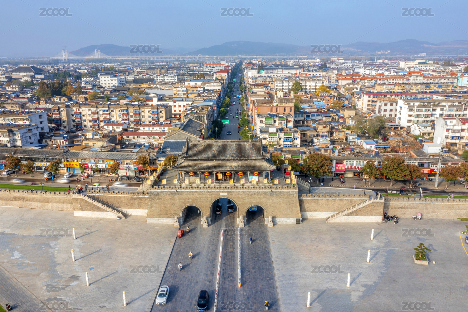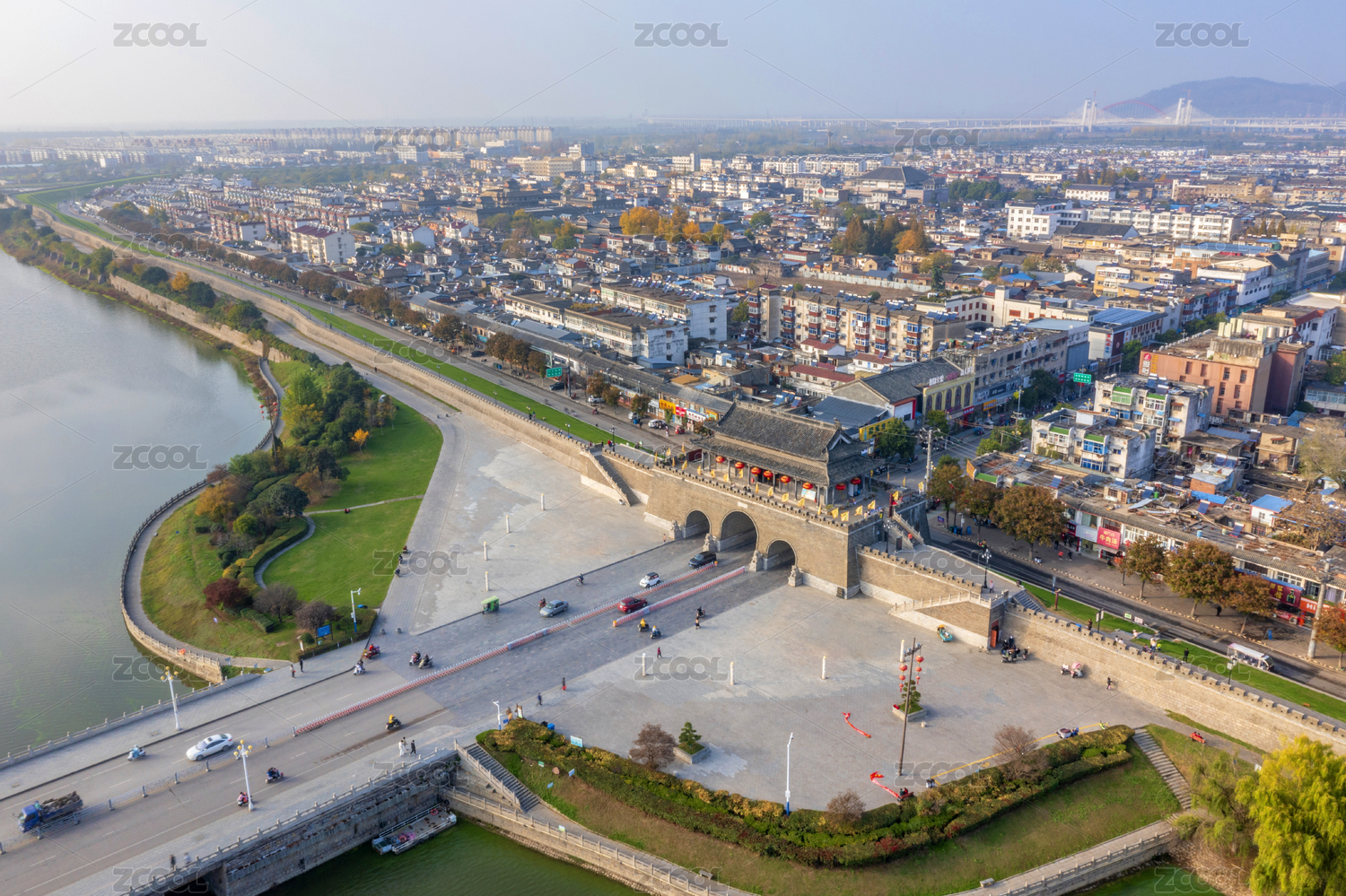 中國安徽淮南壽縣古城通淝門航拍