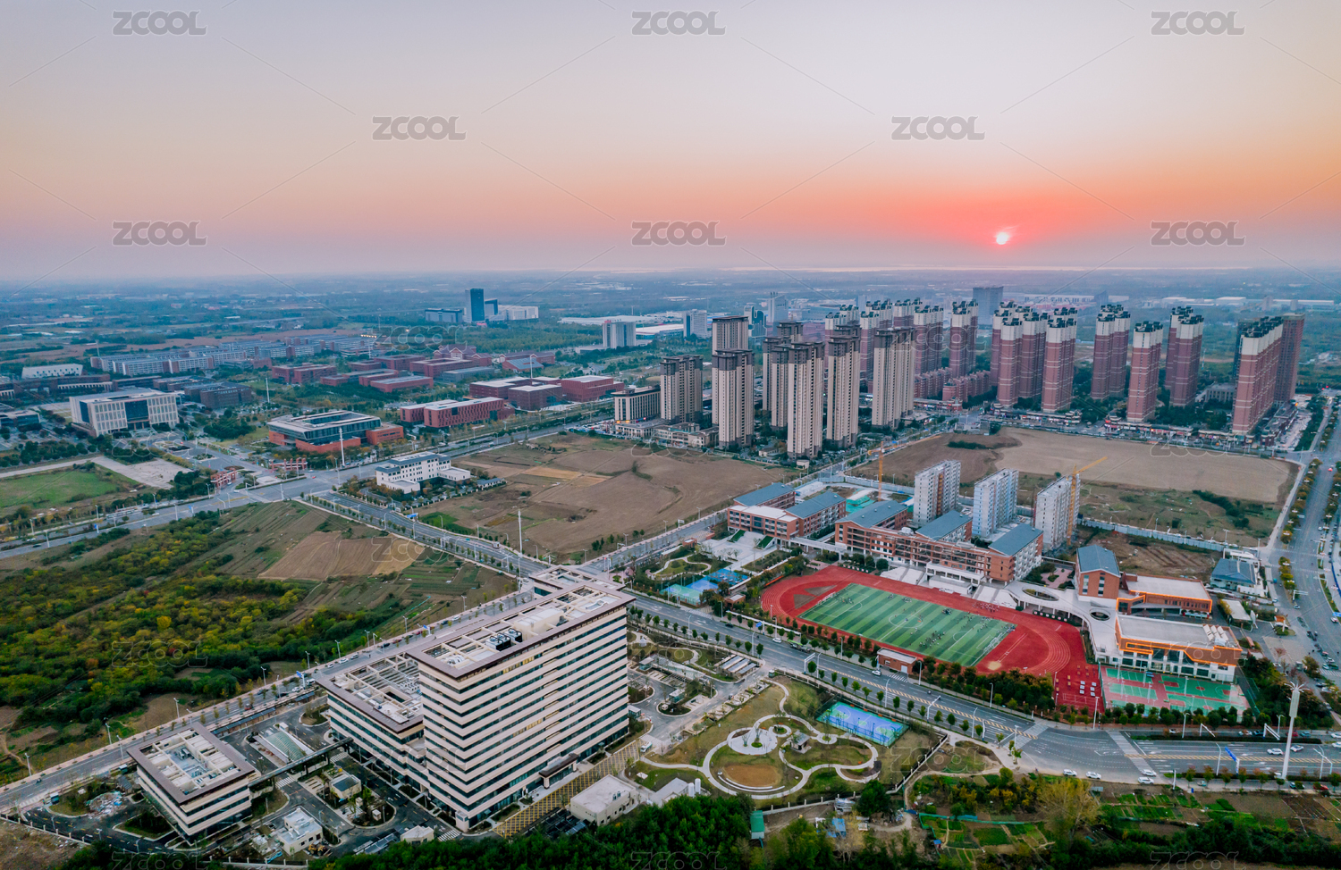 航拍淮南市區(qū)夏天落日