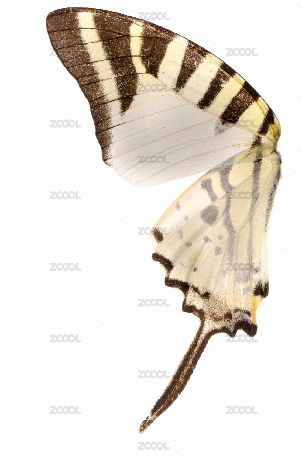 蝴蝶翼黃色和黑色的孤立在白色背景。