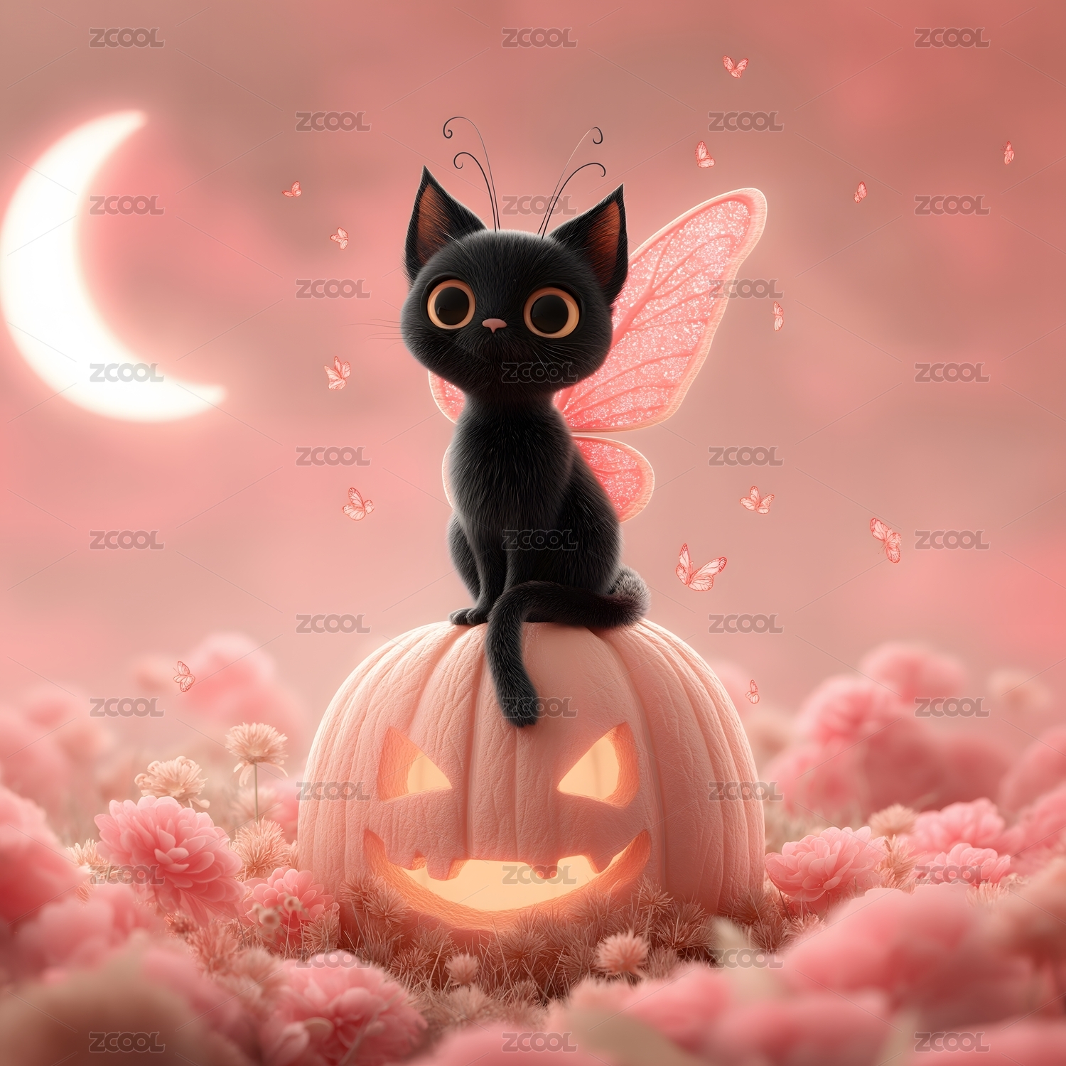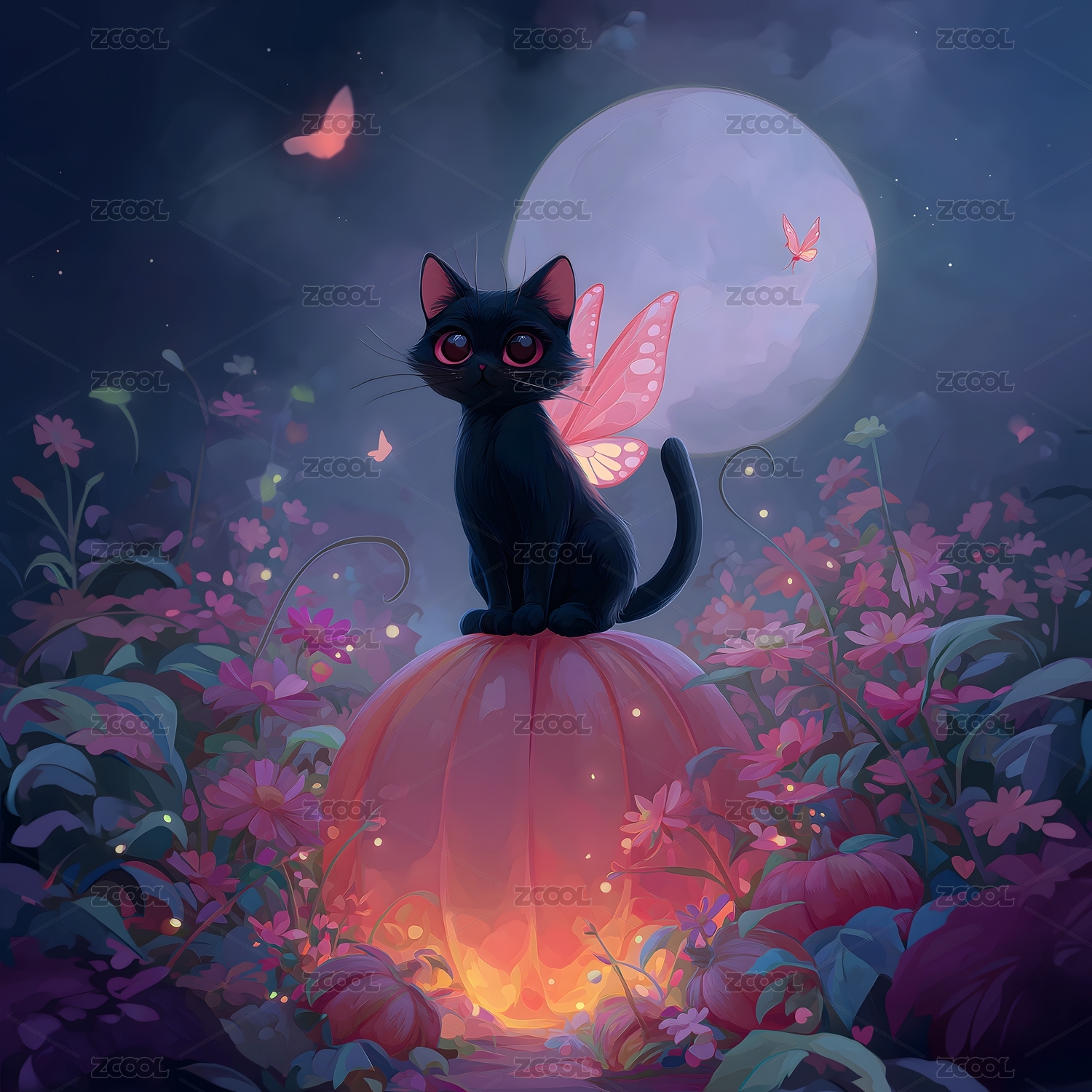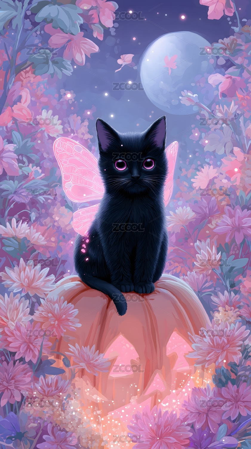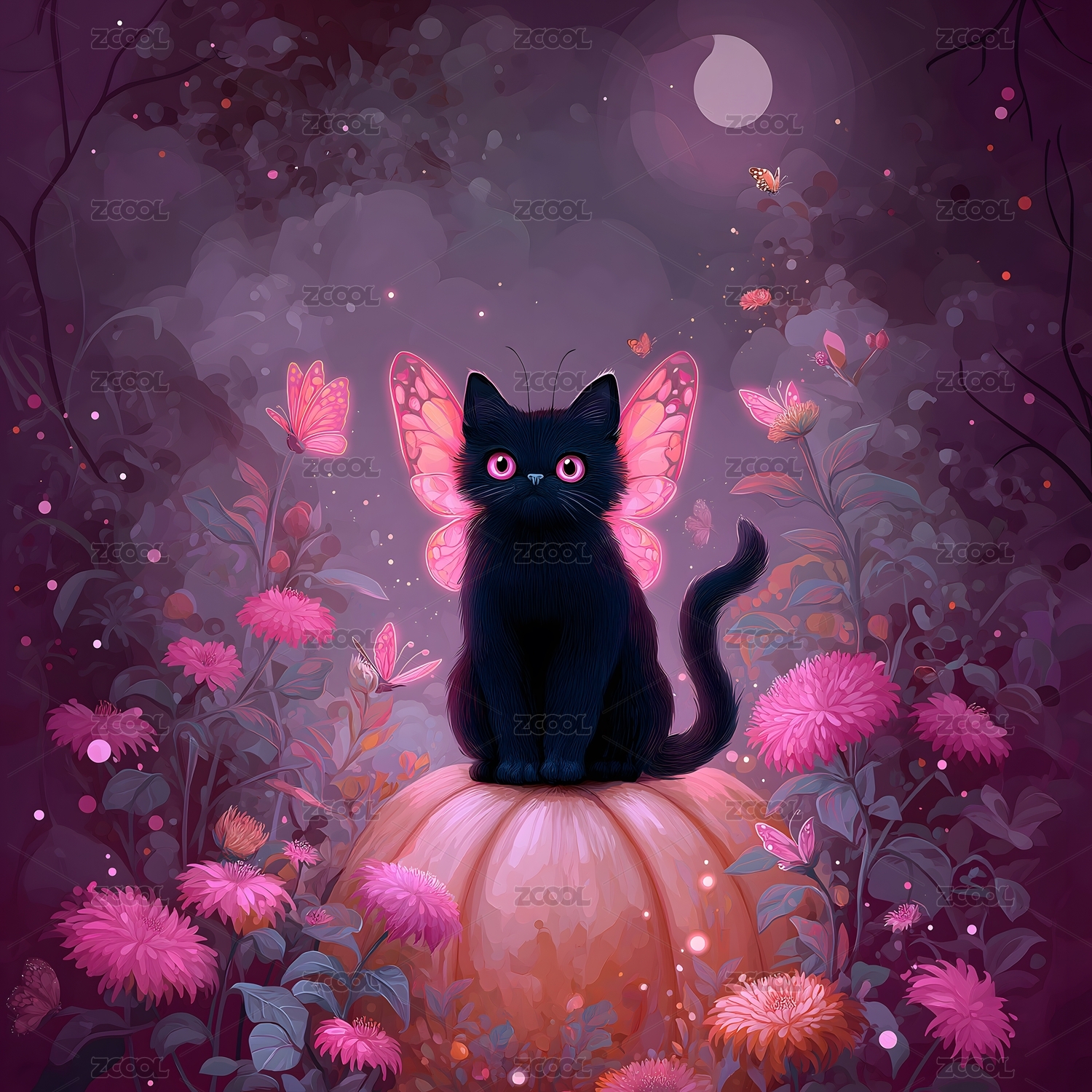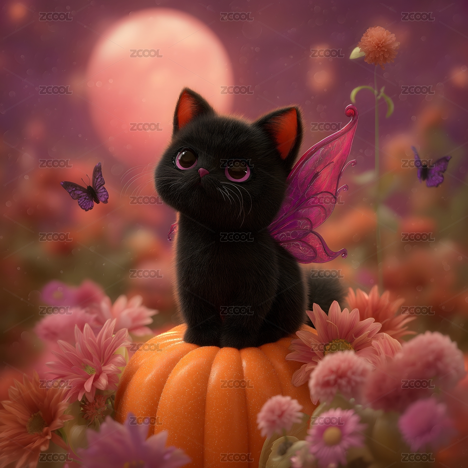 蝶翼黑貓與南瓜夢(mèng)幻風(fēng)格畫面呈現(xiàn)
