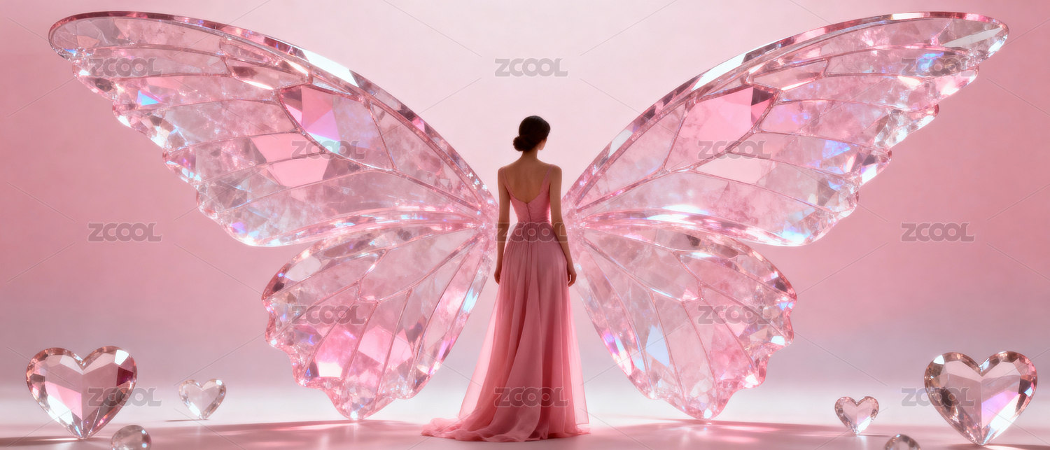 粉色水晶蝶翼女子背影