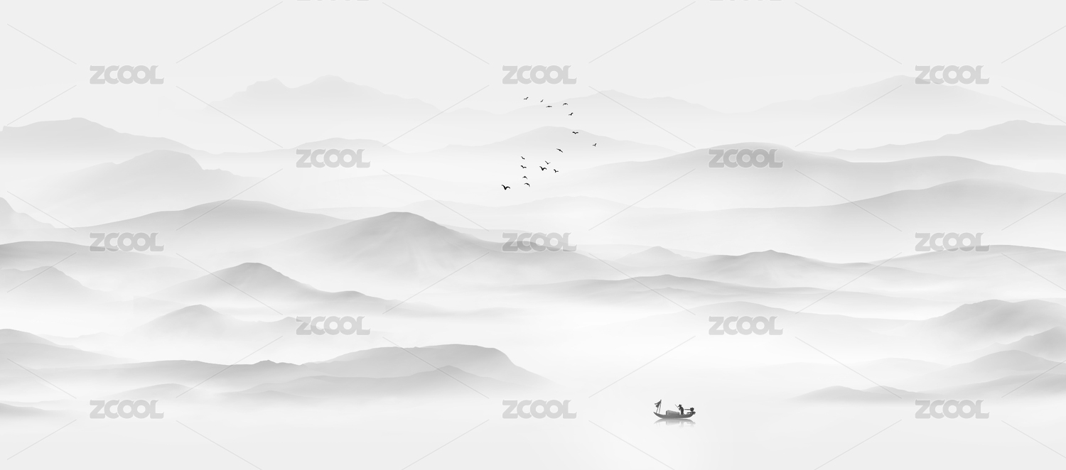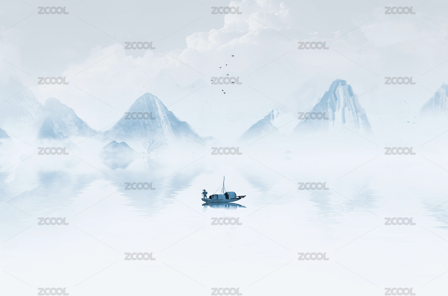 清新淡雅自然風(fēng)景山水插畫(huà)藝術(shù)矢量圖