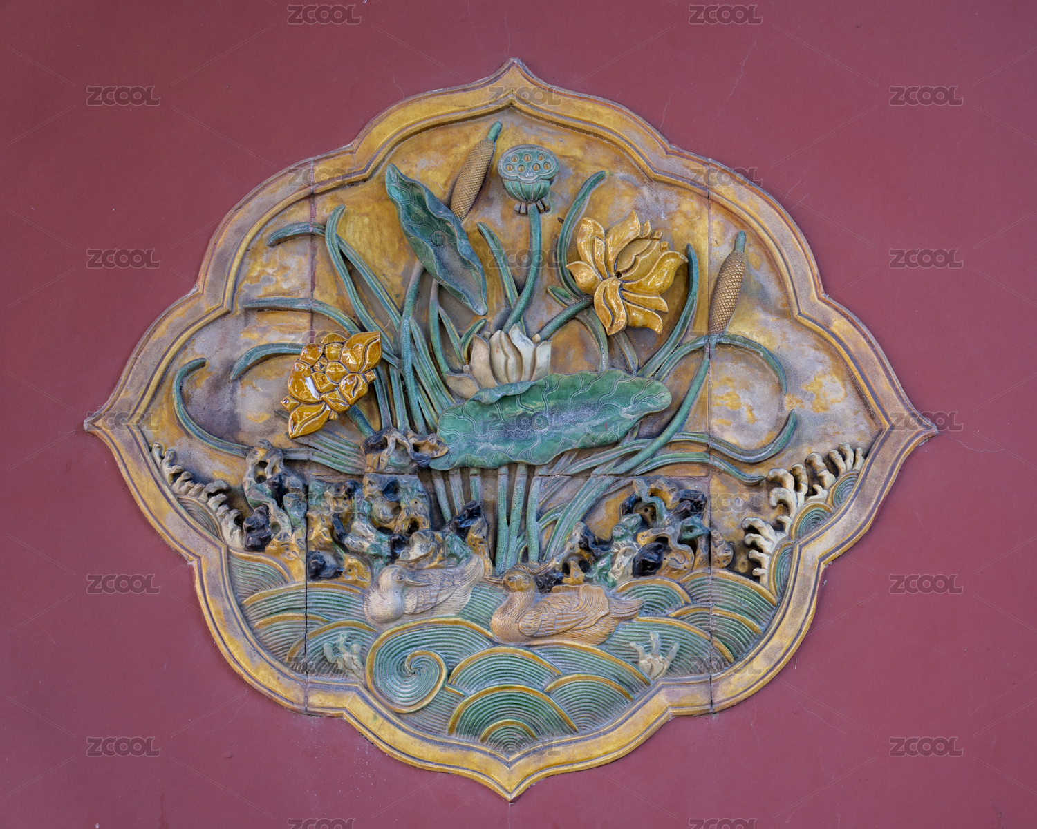 北京故宮博物院荷花紋琉璃墻