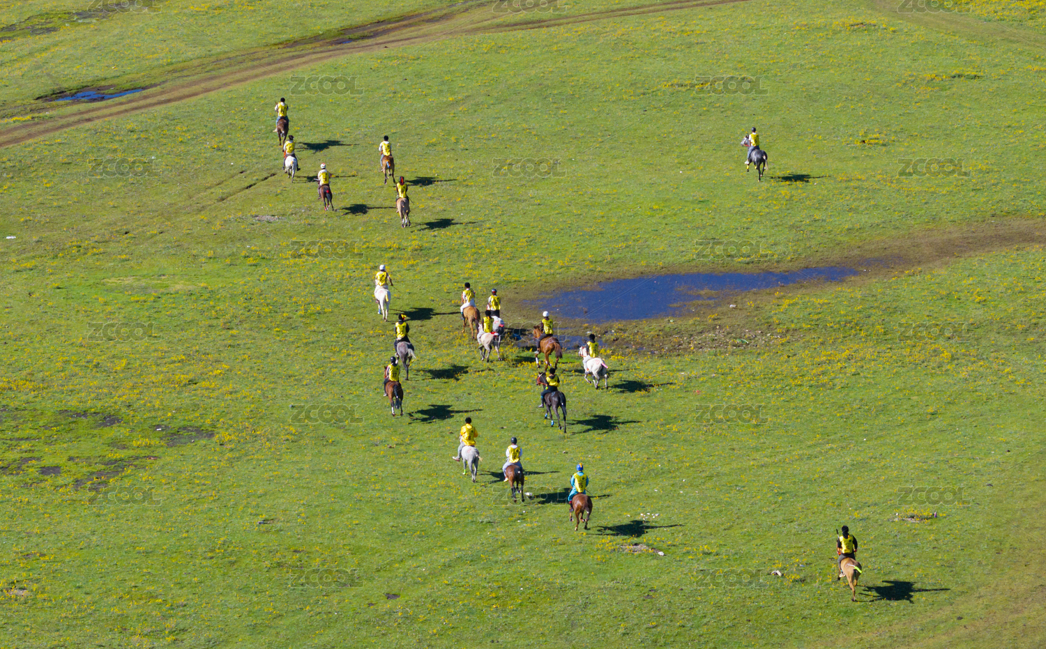理塘八一賽馬會(huì)草原上騎馬比賽的隊(duì)伍