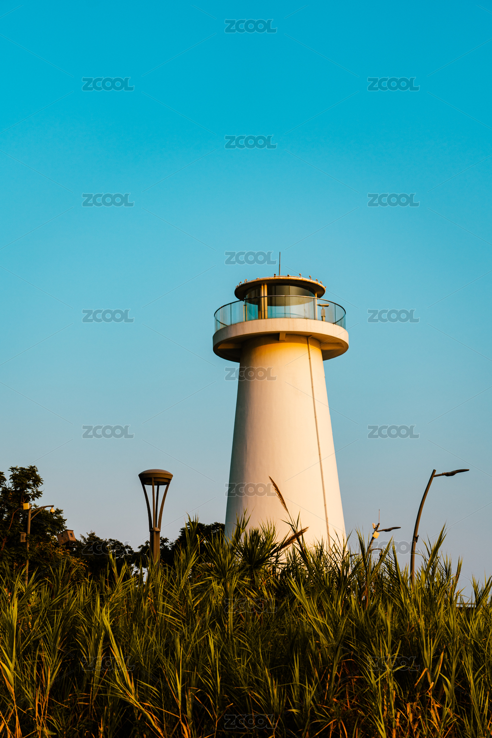 廣東深圳海邊日落余暉燈塔