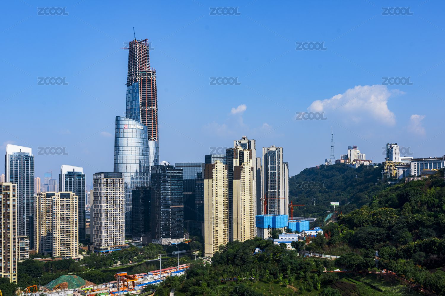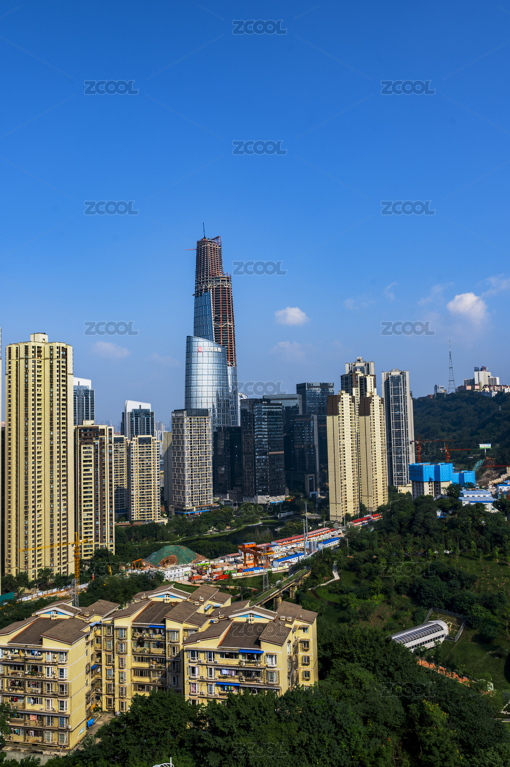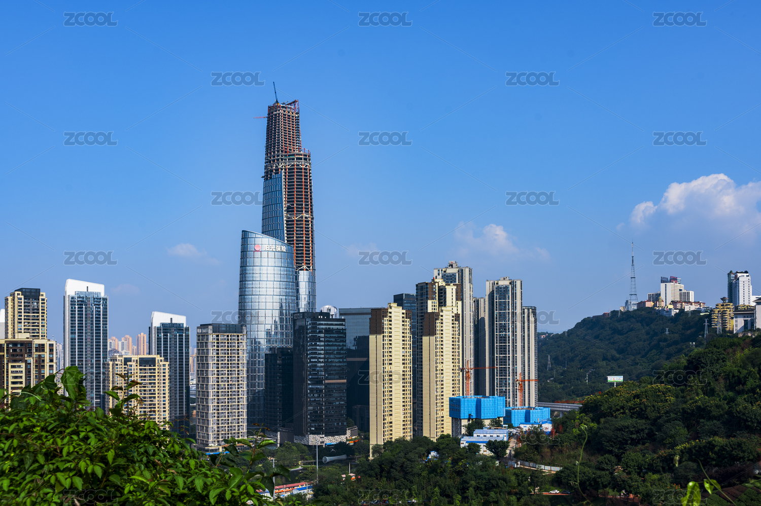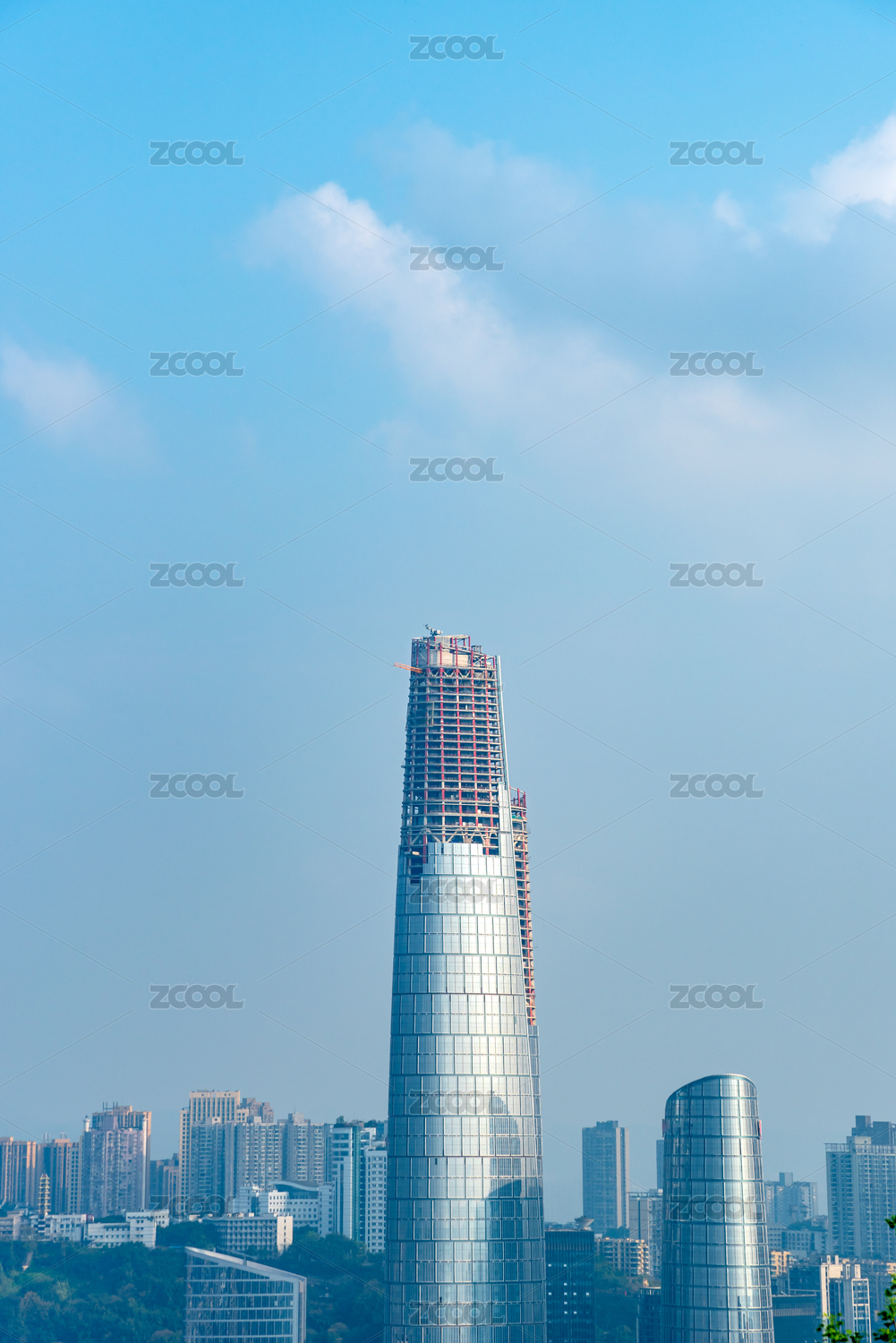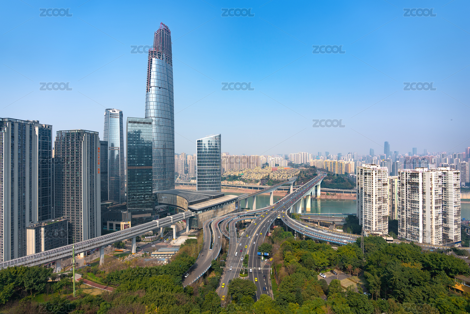藍(lán)天下遠(yuǎn)眺重慶渝中區(qū)化龍橋陸海國際中心