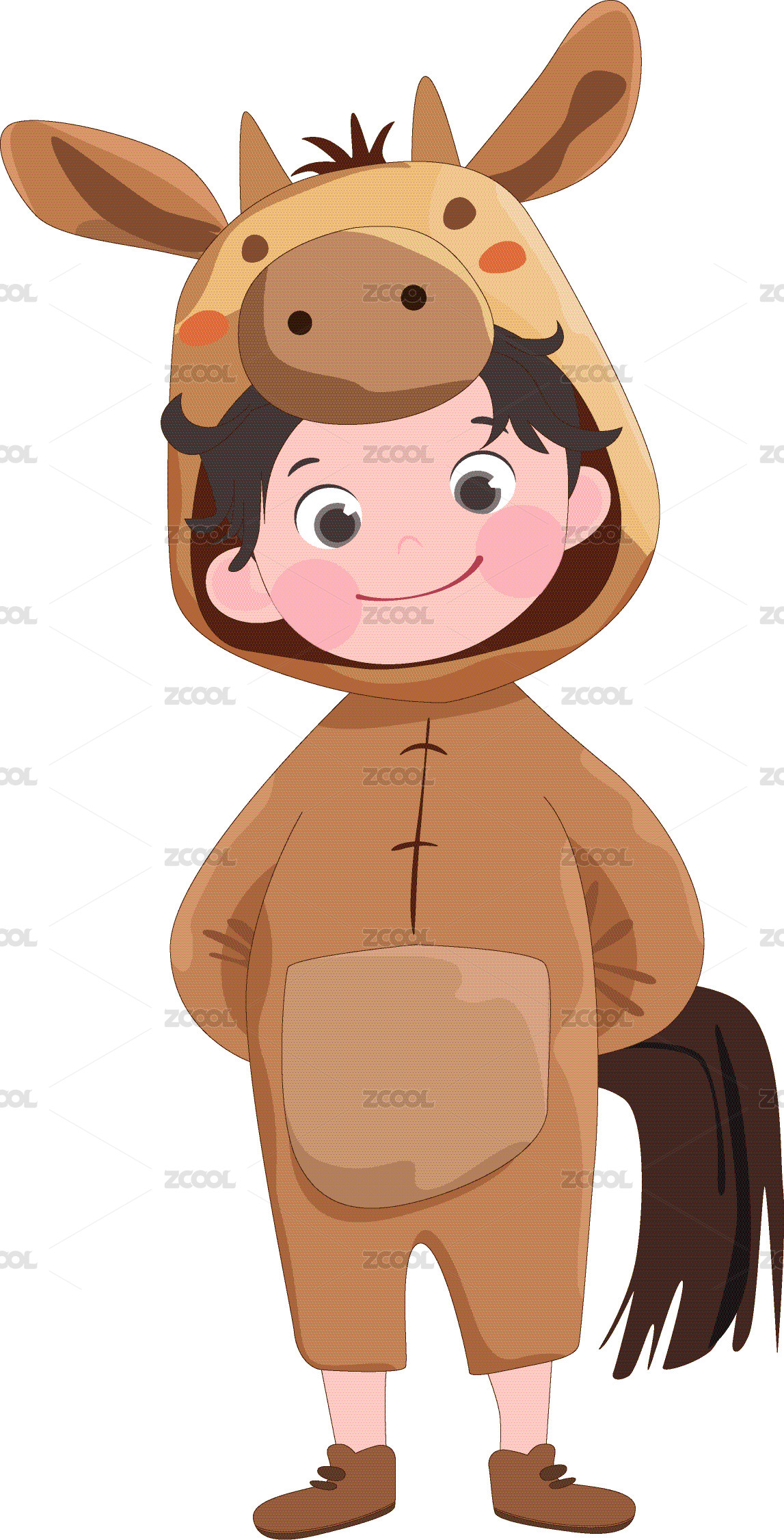 女孩穿卡通玩偶服小鹿睡衣可愛動物卡片插畫
