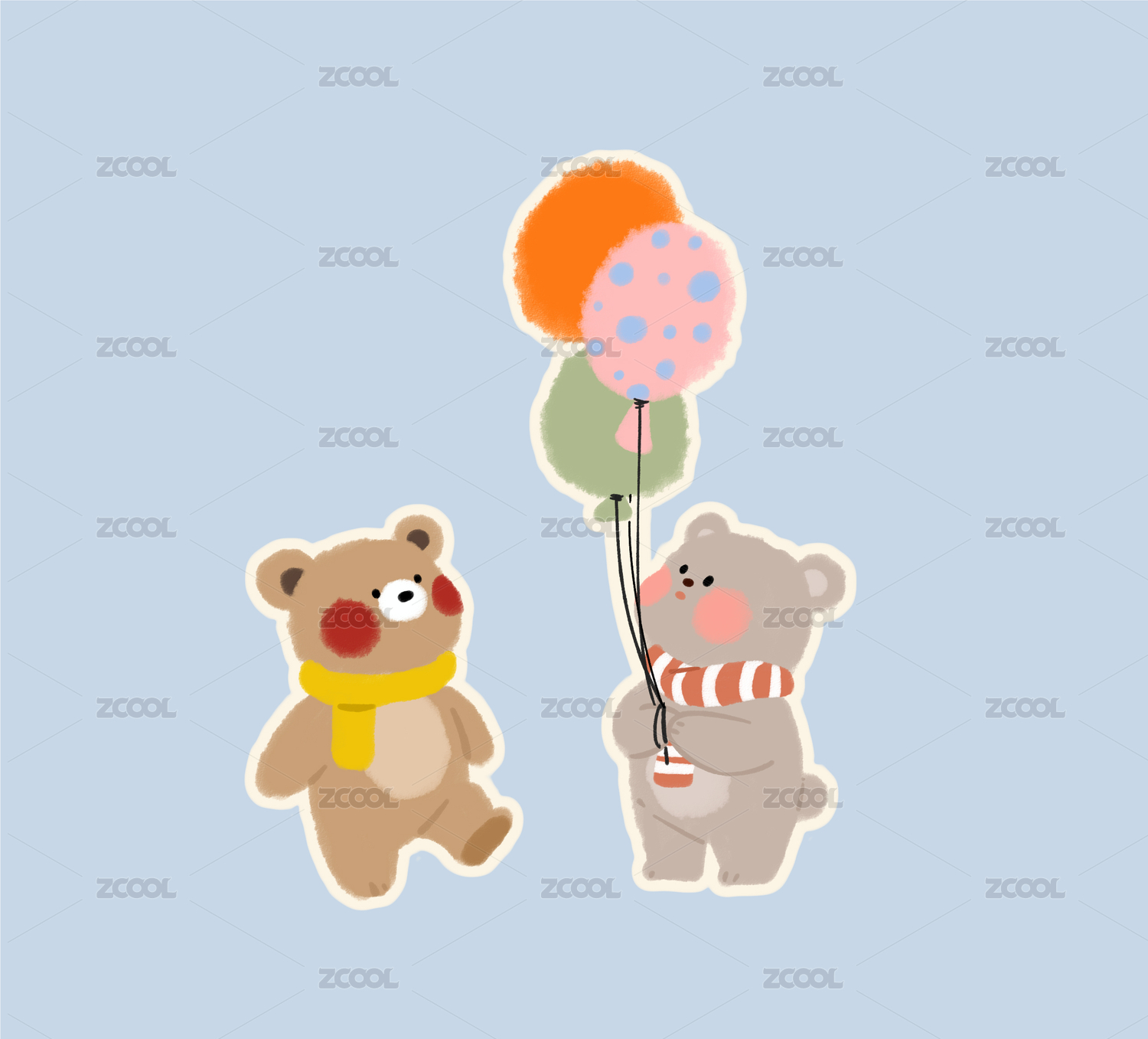可愛小熊與彩色氣球插畫