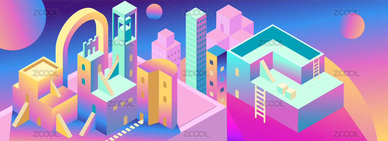 起起伏伏隱形城市矢量漸變色商務(wù)背景