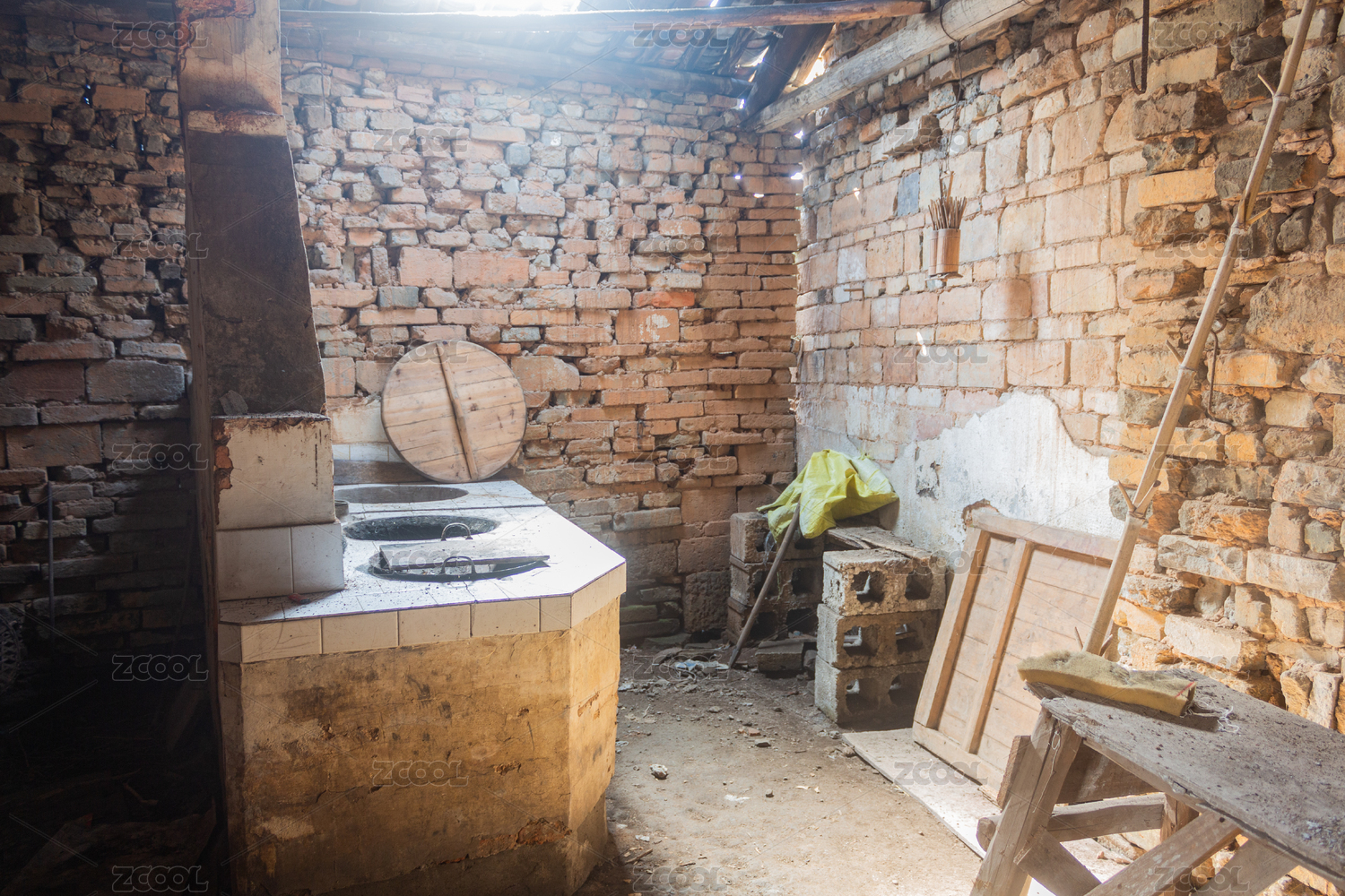 灶臺(tái)土炕農(nóng)村廚房室內(nèi)
