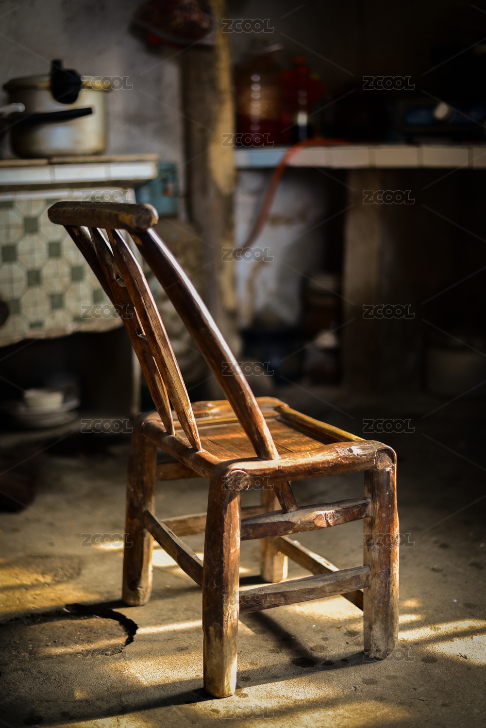 農(nóng)村破舊房子的廚房一角