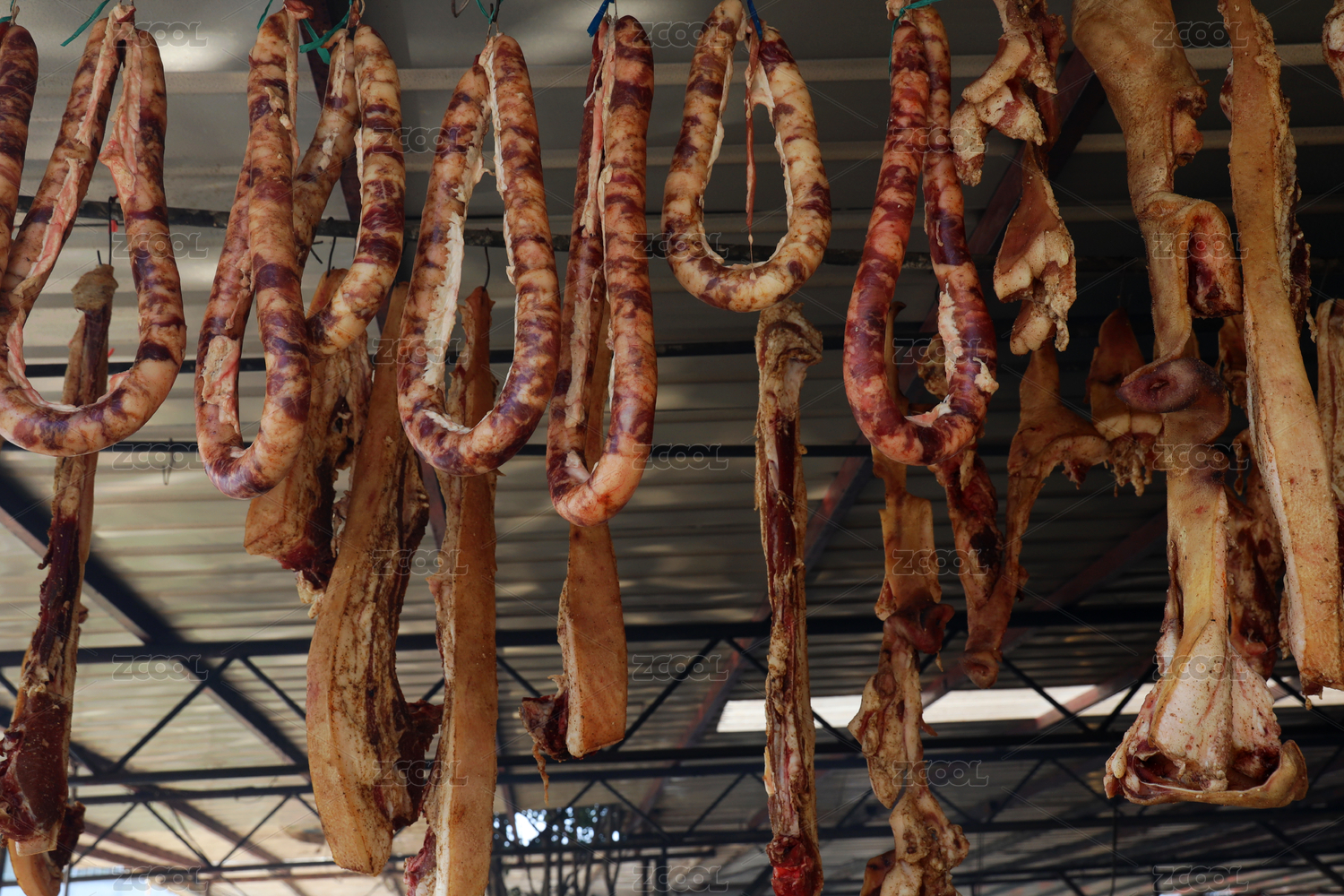 懸掛的蒜頭和干辣椒