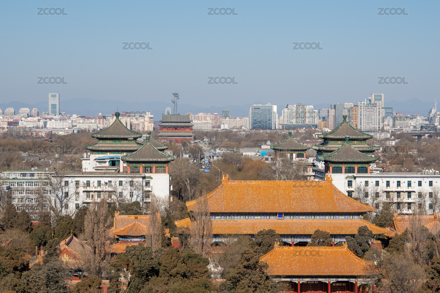 從景山公園俯拍北京北中軸線沿線城市風(fēng)光