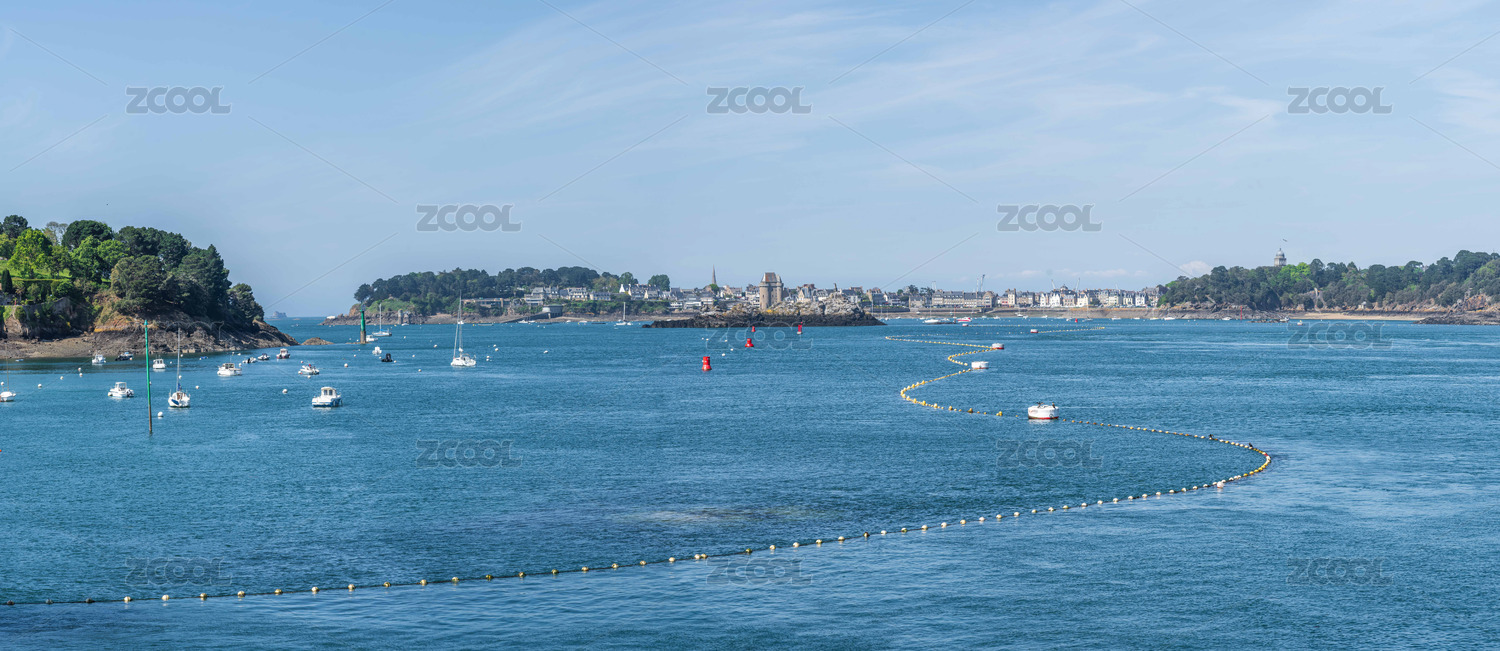 圣馬洛歷史名城背景下的湖泊前景與帆船游艇