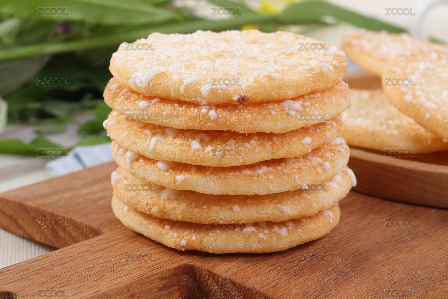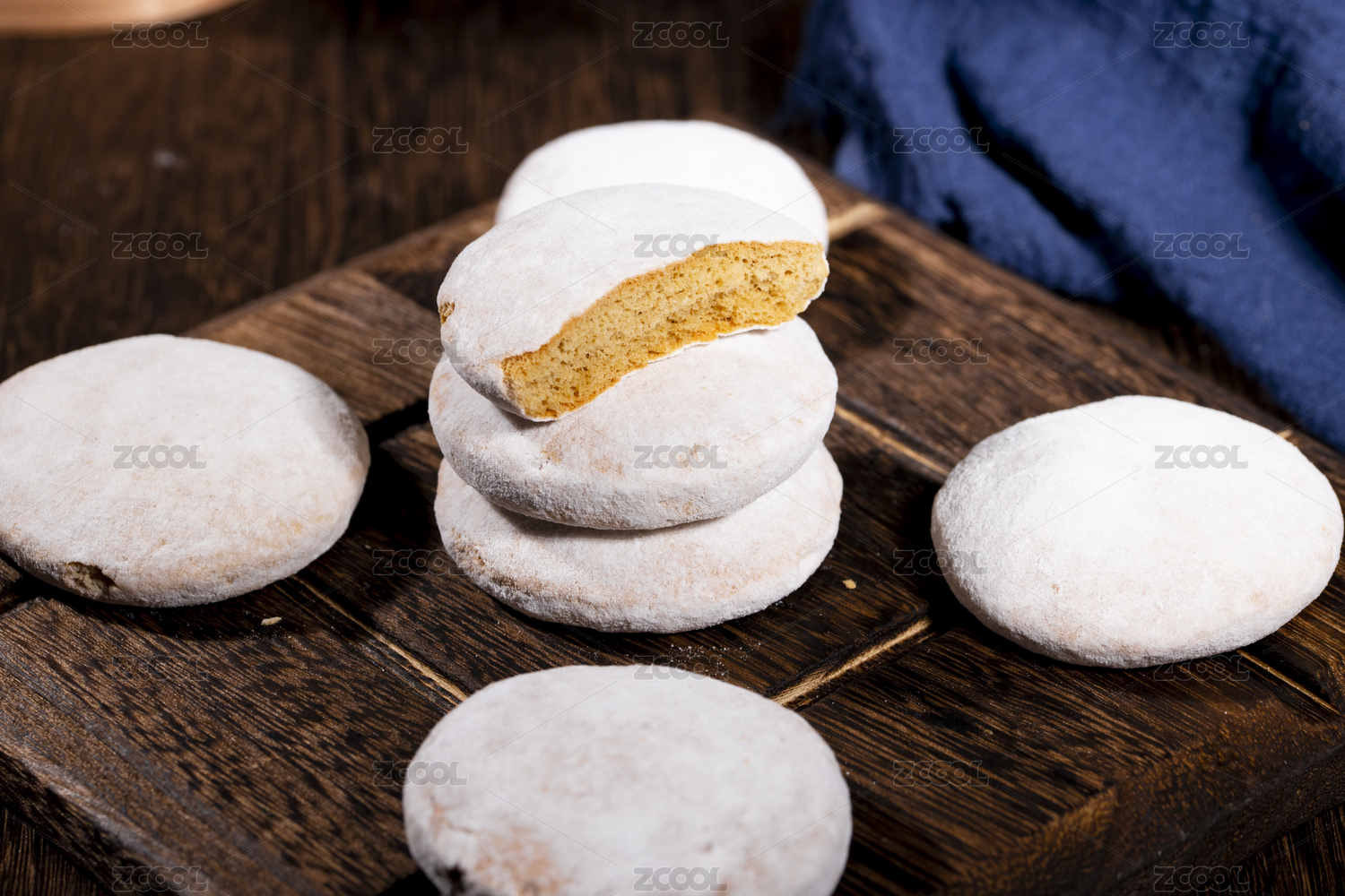 木桌背景休閑零食雪餅特寫