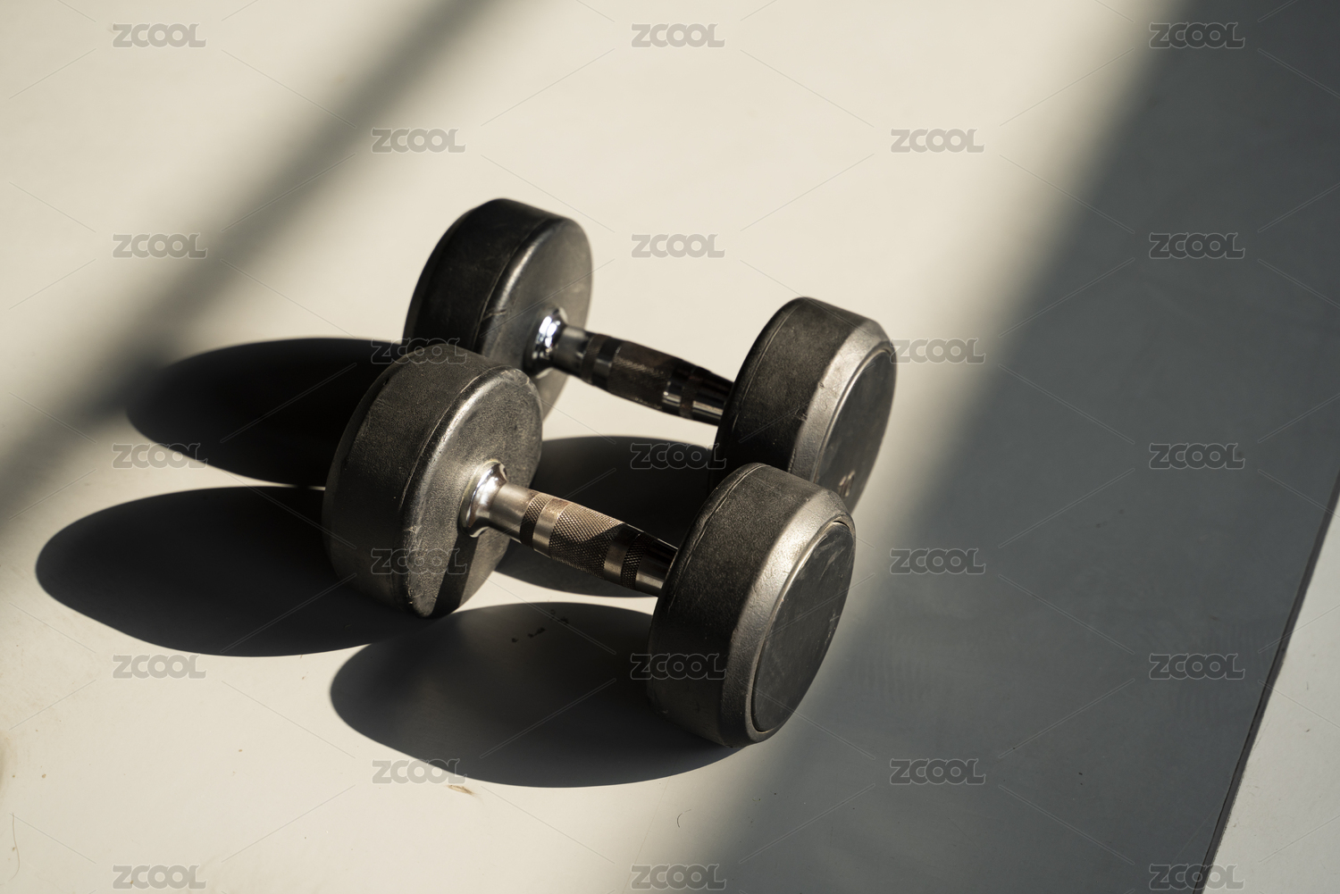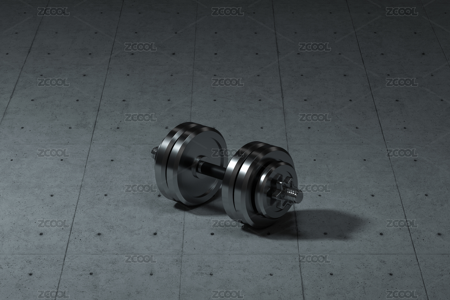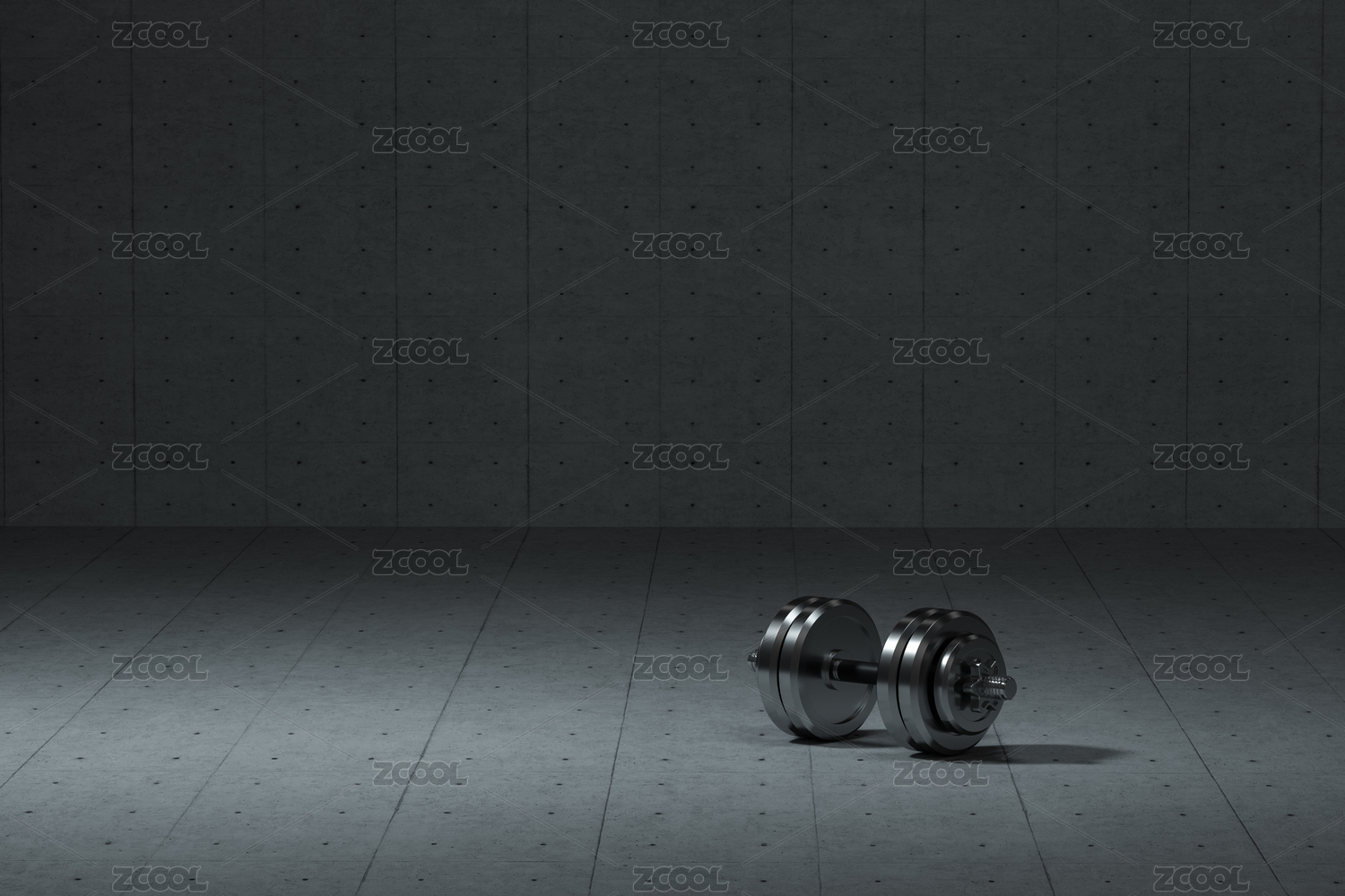 啞鈴與水泥建筑背景 健身題材背景 三維渲染