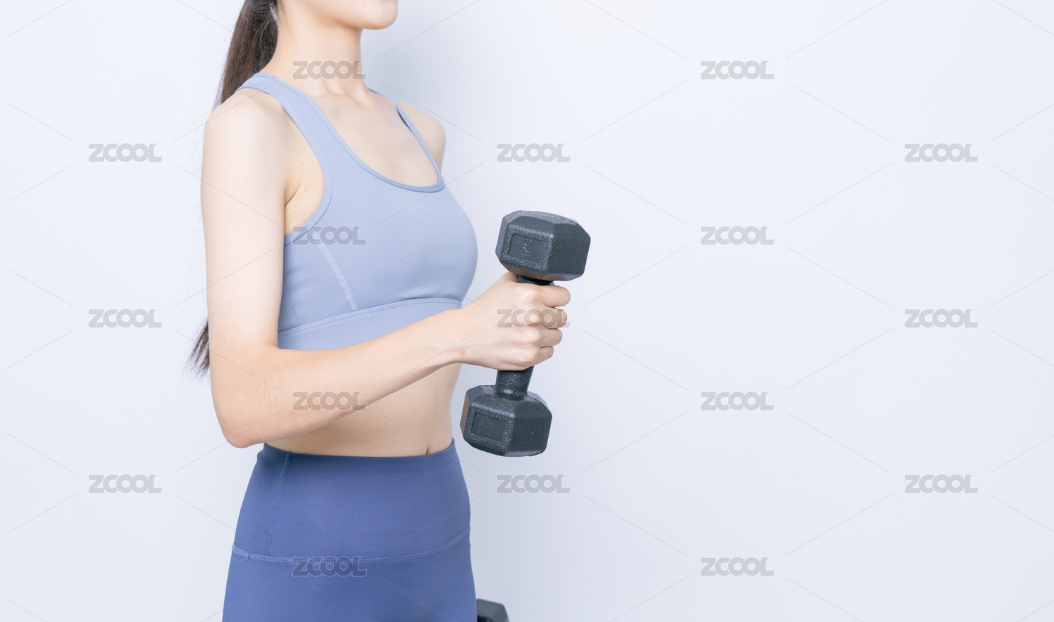 身穿運(yùn)動(dòng)內(nèi)衣,手持啞鈴鍛煉的年輕女性