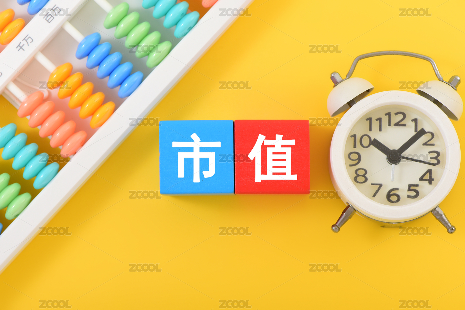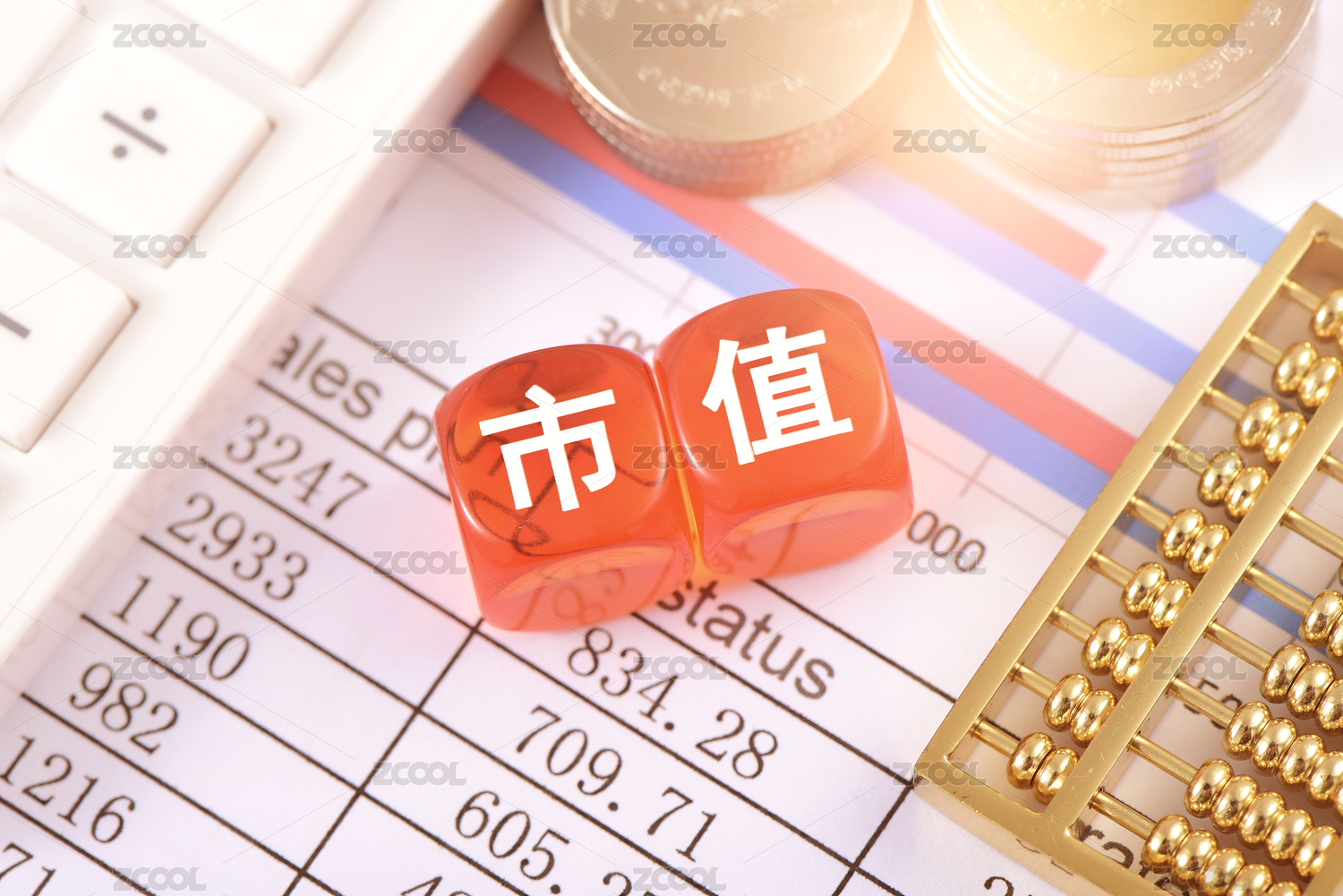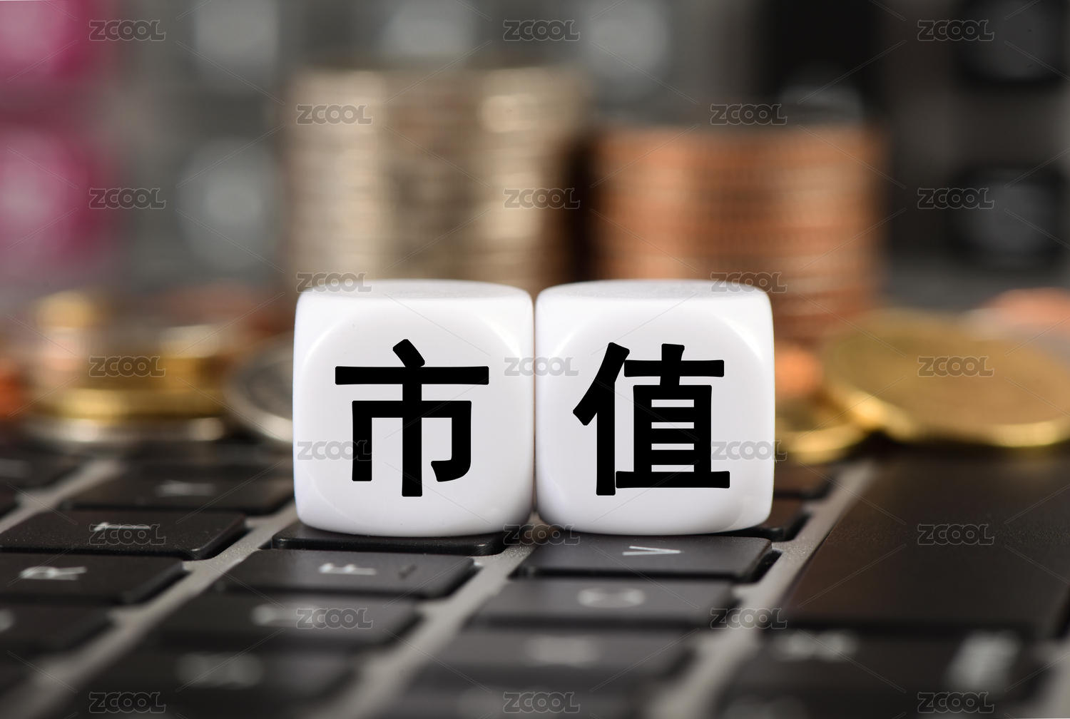 筆記本電腦上計(jì)算器和硬幣前的文字市值