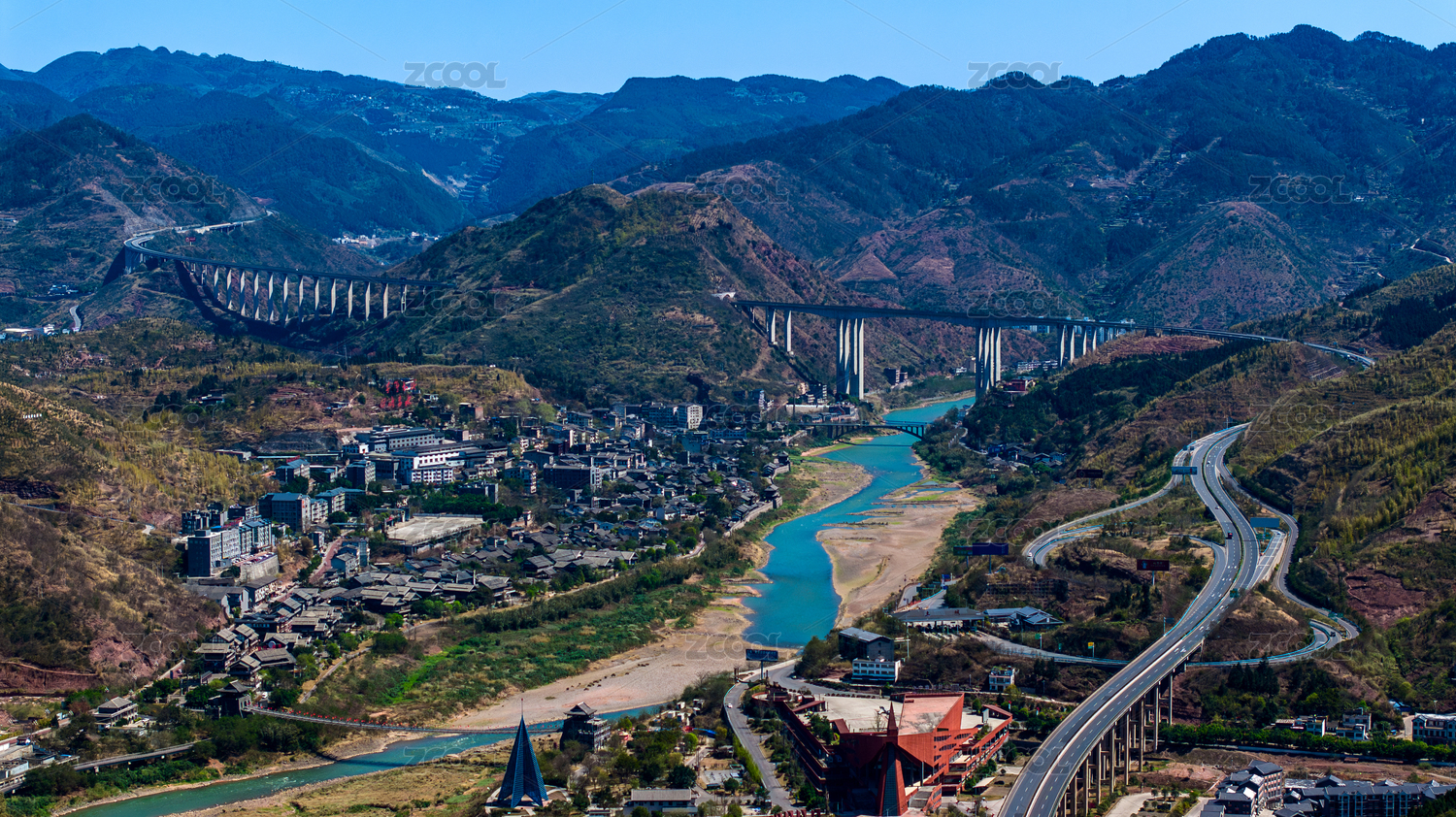 中國貴州省遵義市赤水山區(qū)高速公路風景航拍