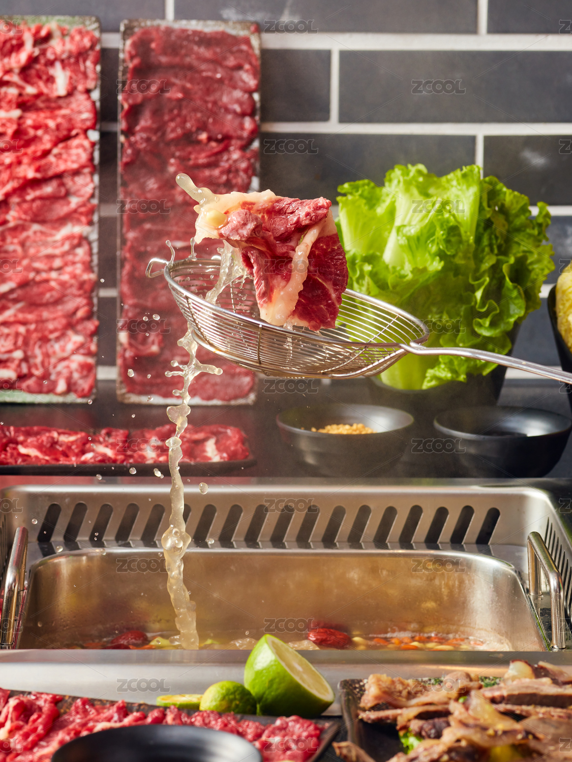 牛肉火鍋拋起來一塊牛肉