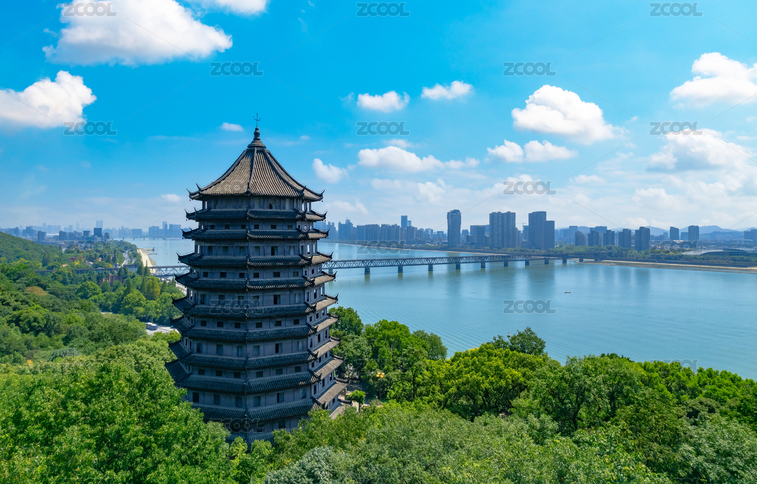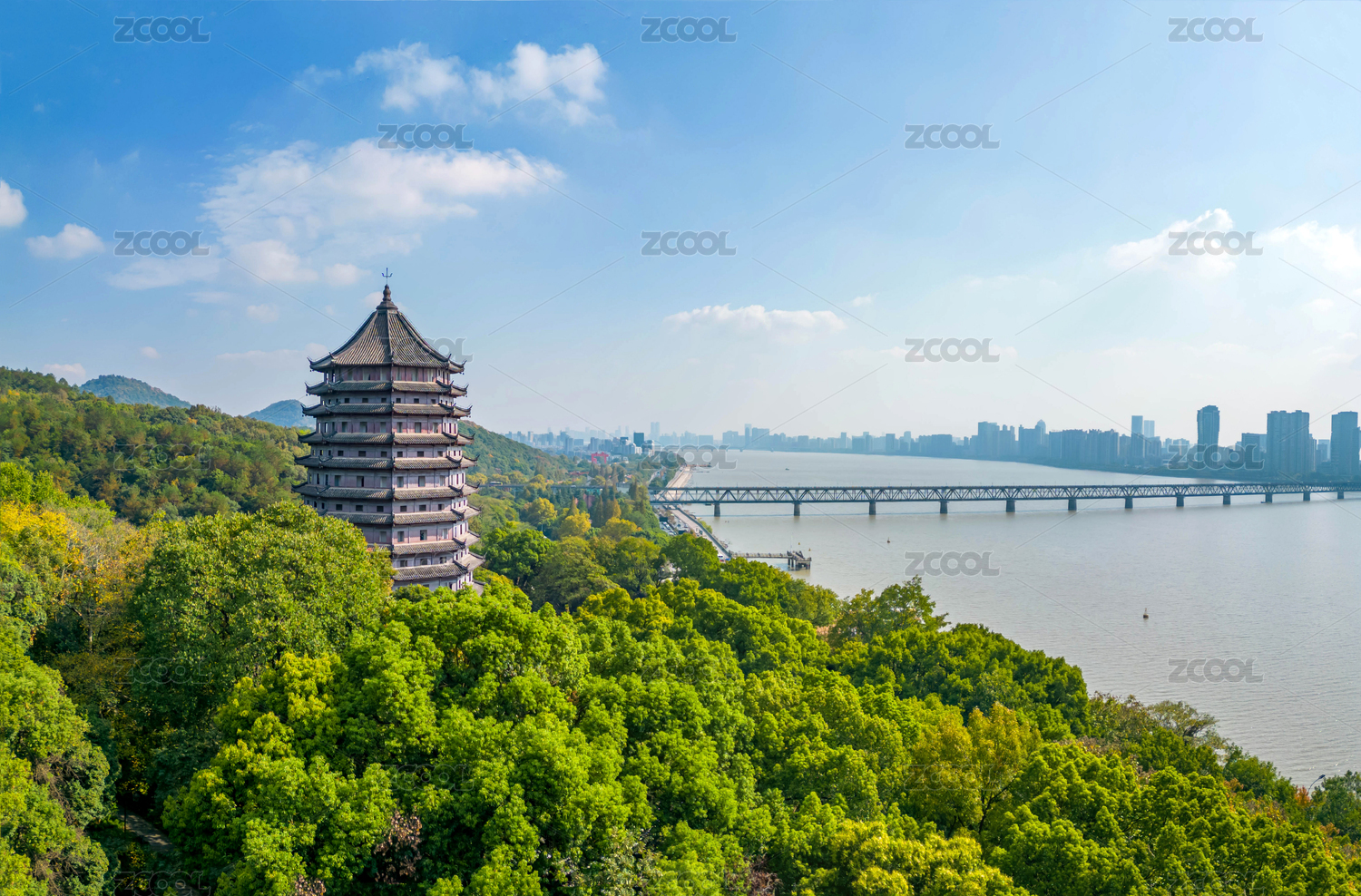 浙江杭州錢塘江大橋風(fēng)光六和塔秋色