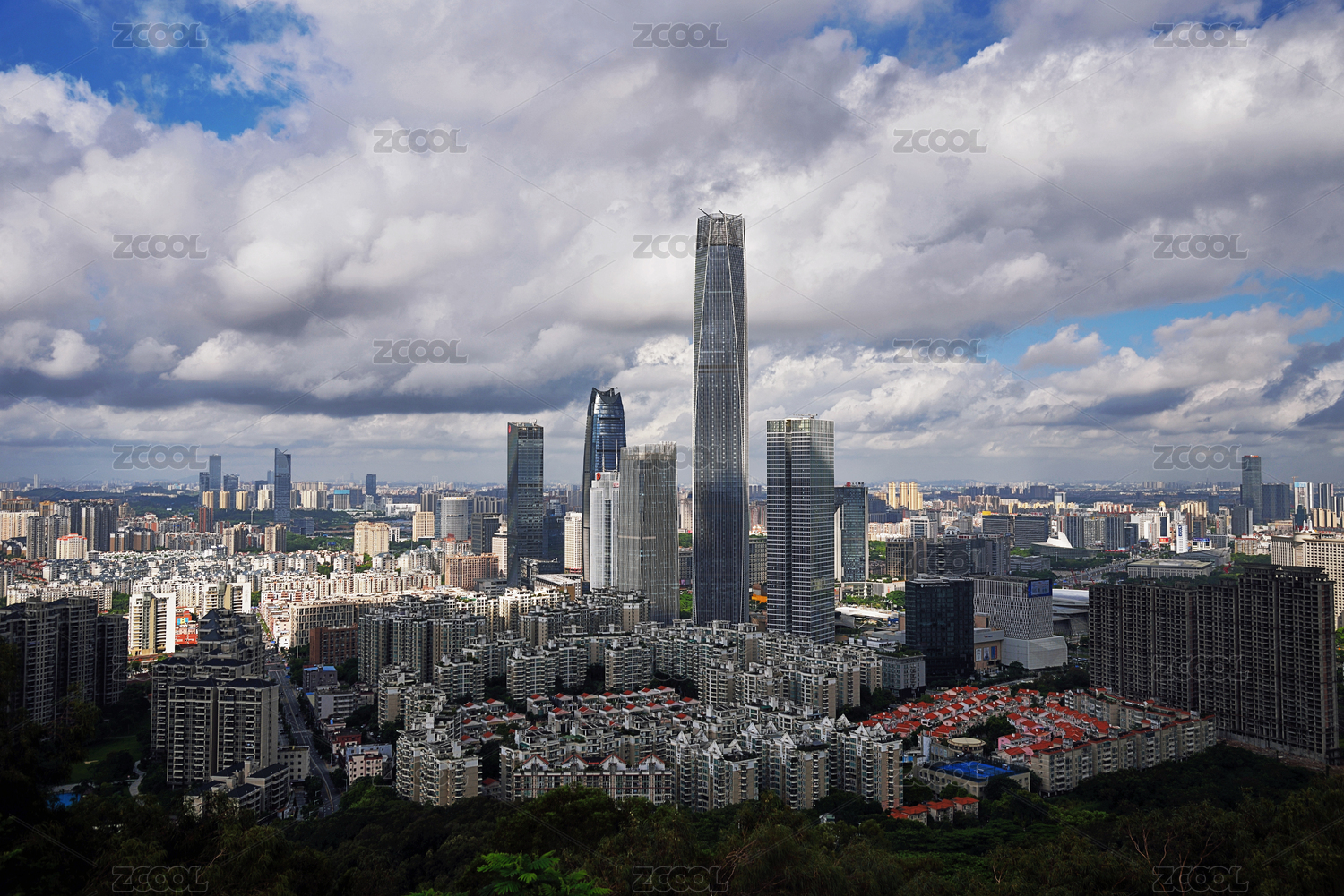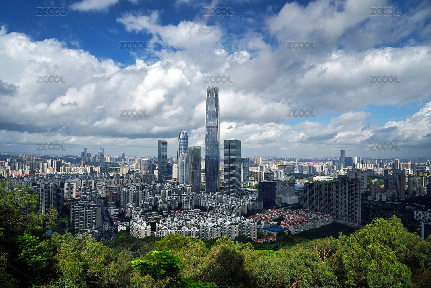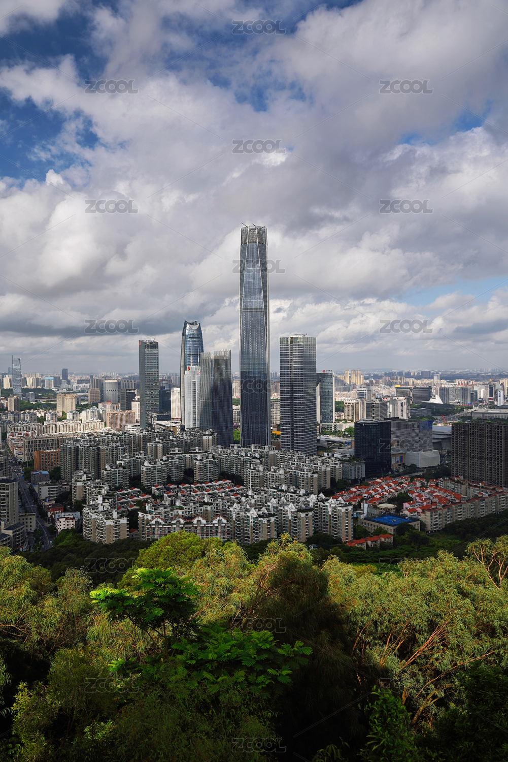中國廣東東莞旗峰公園國貿(mào)中心城市建筑風(fēng)光