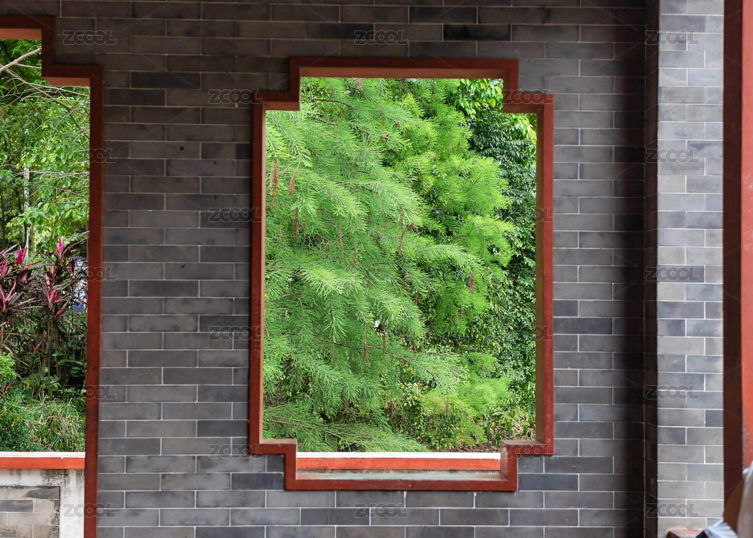 公園長廊窗外的美麗景色
