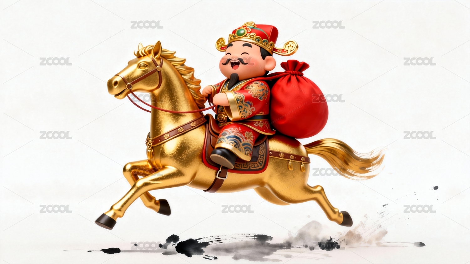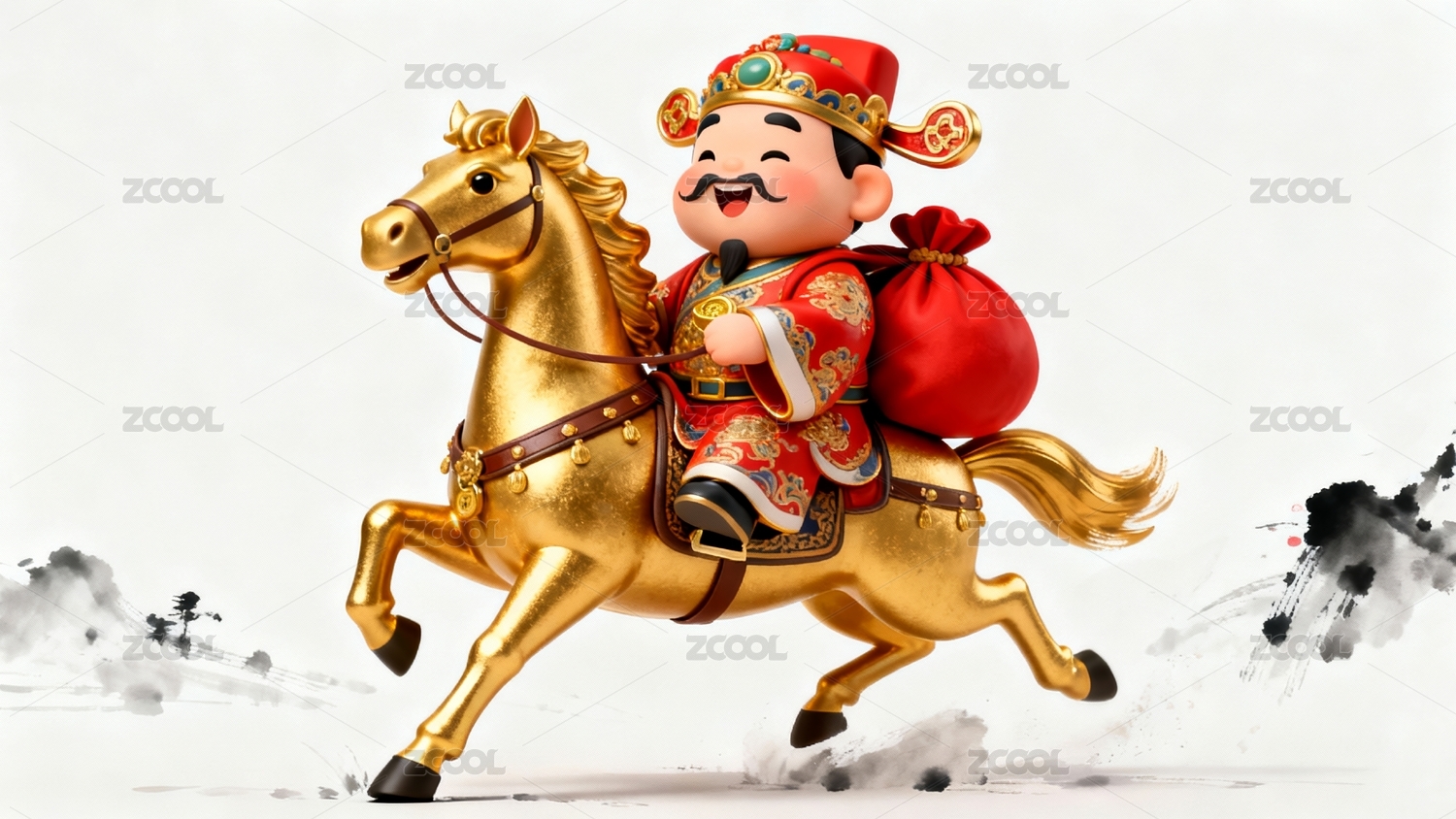 財神騎金馬喜慶新春招財場景