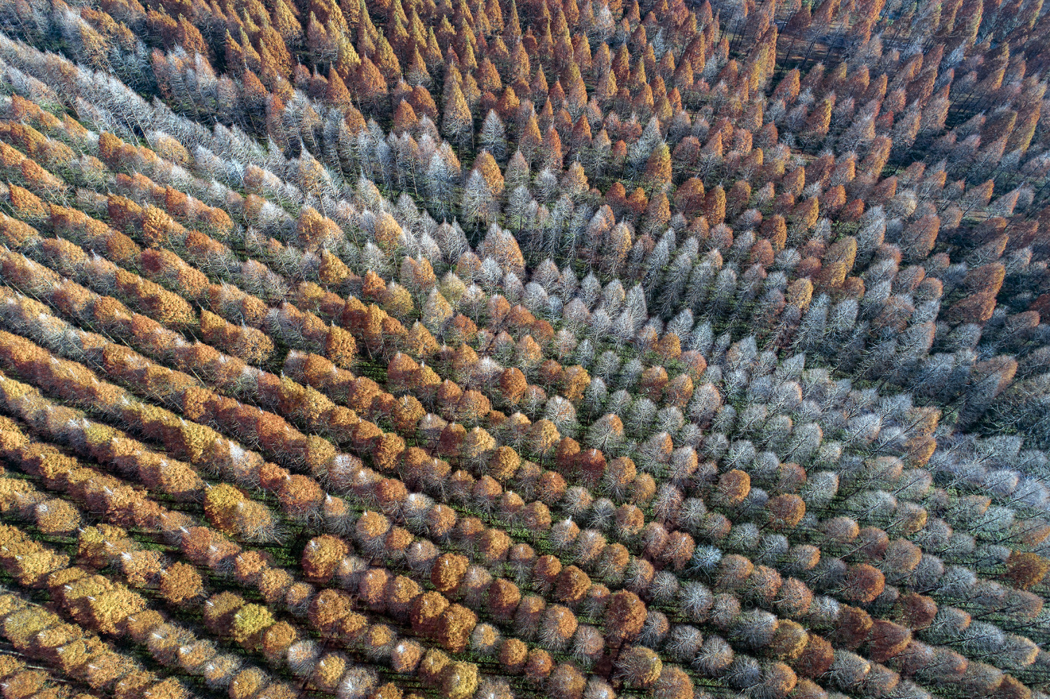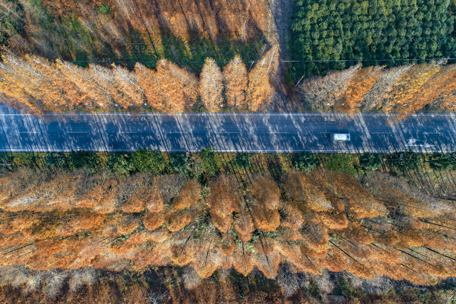航拍秋天的江蘇省鹽城東臺黃海國家森林公園