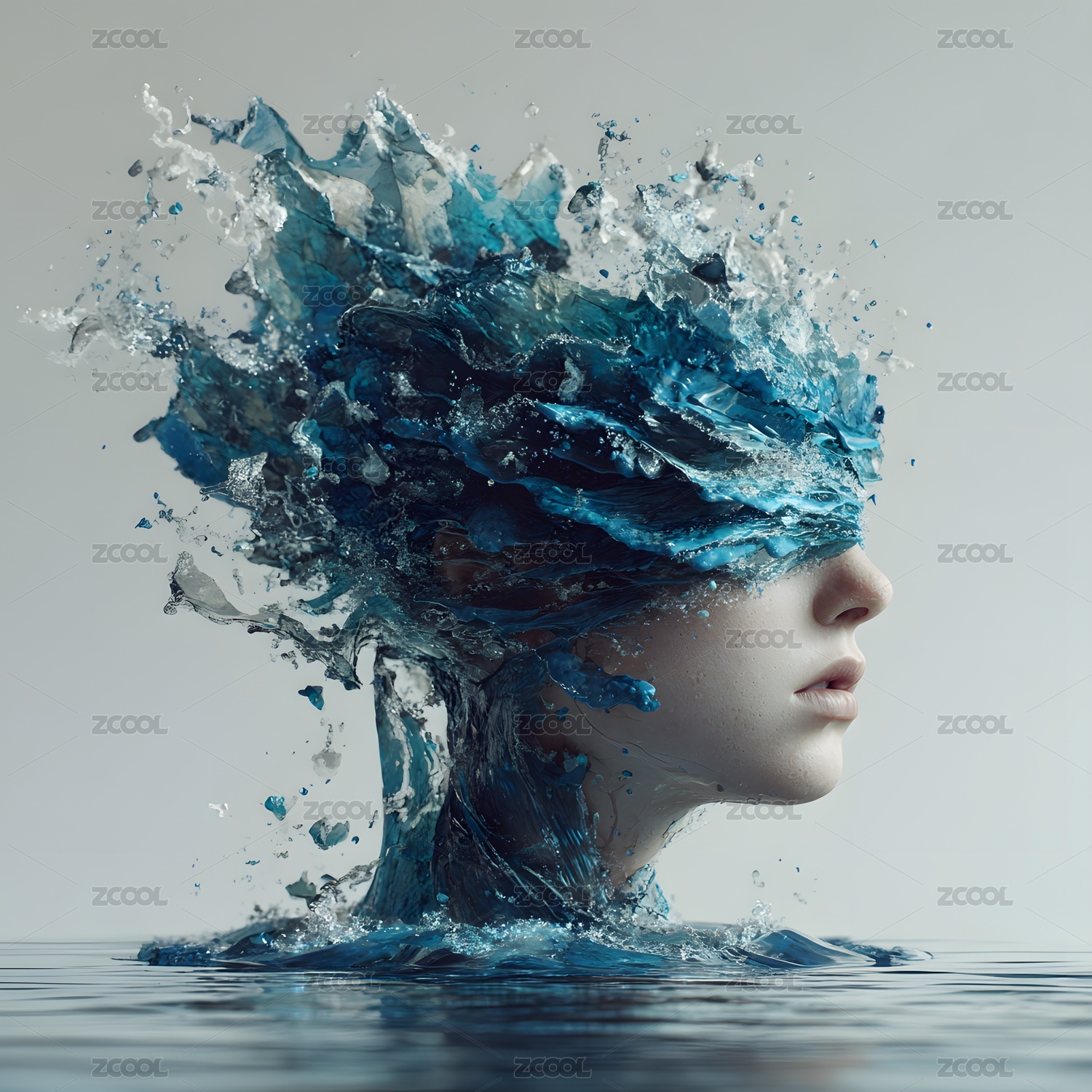 水元素和人臉創(chuàng)意藝術(shù)抽象視覺效果