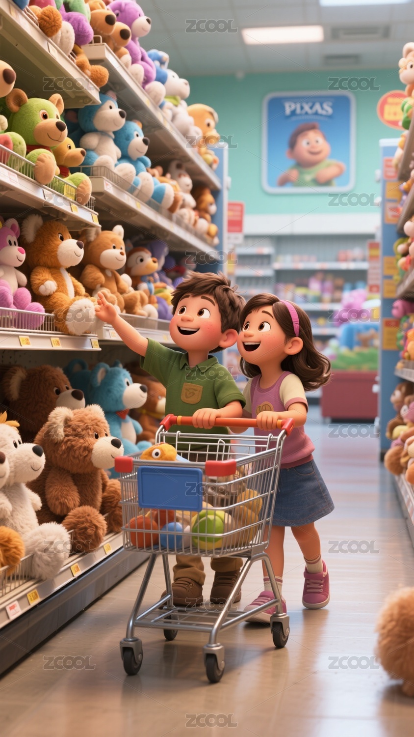 卡通風(fēng)格兒童購(gòu)物場(chǎng)景插畫(huà)