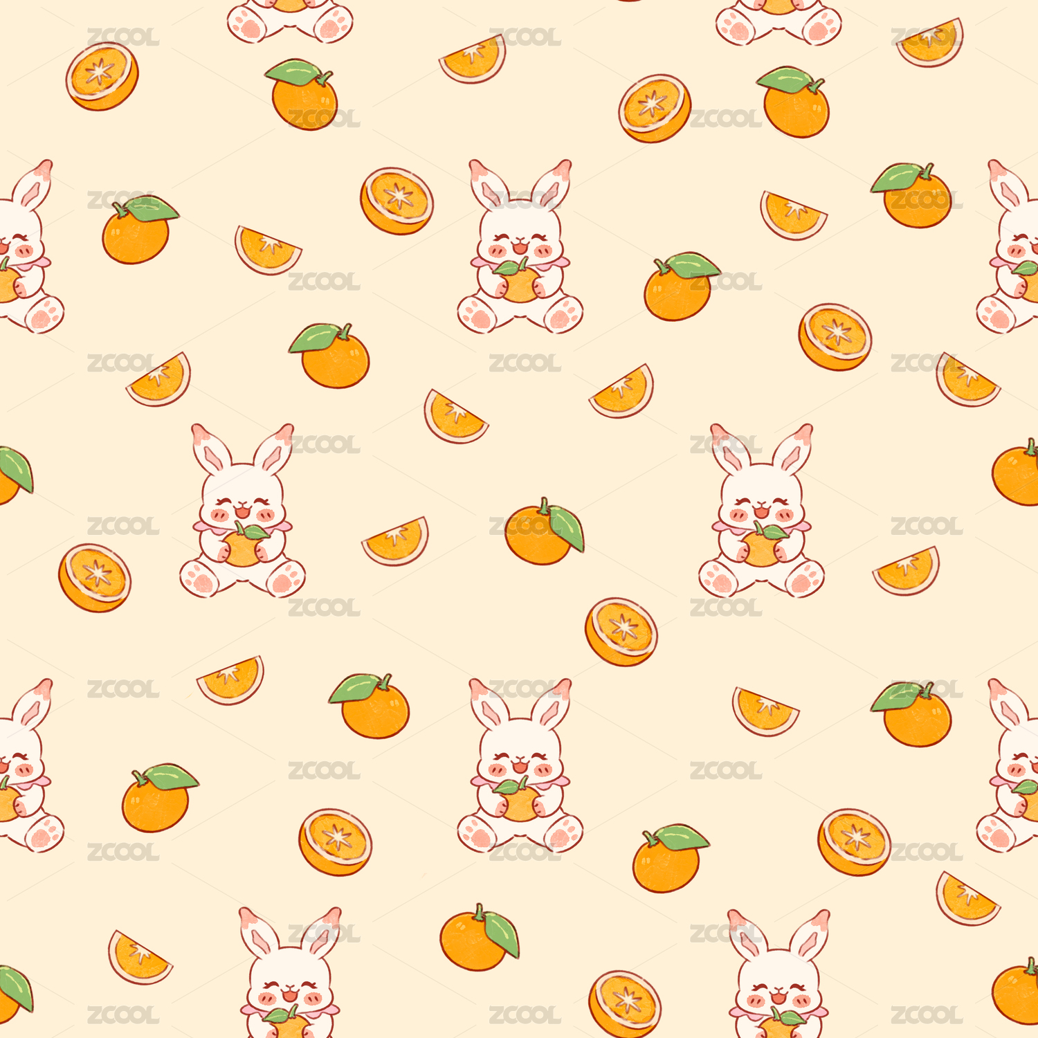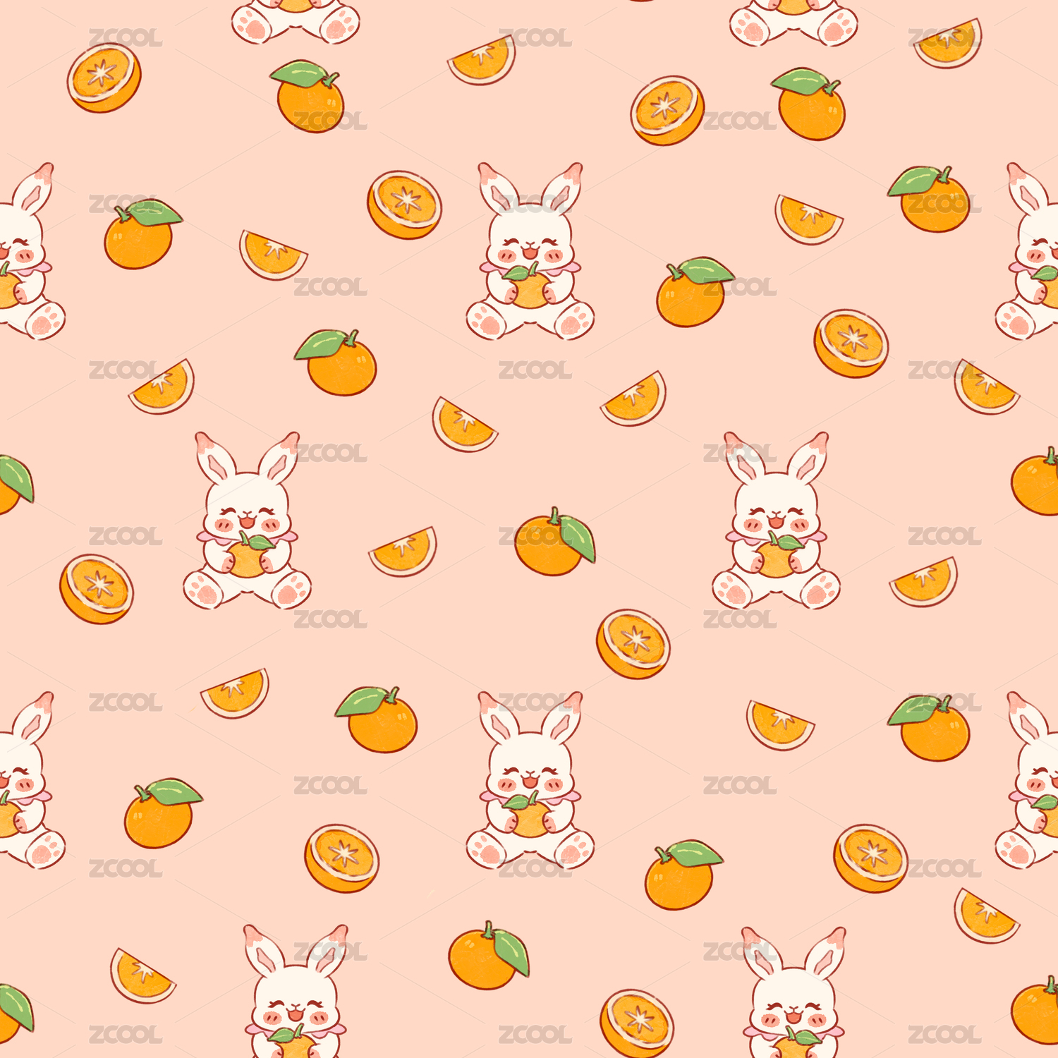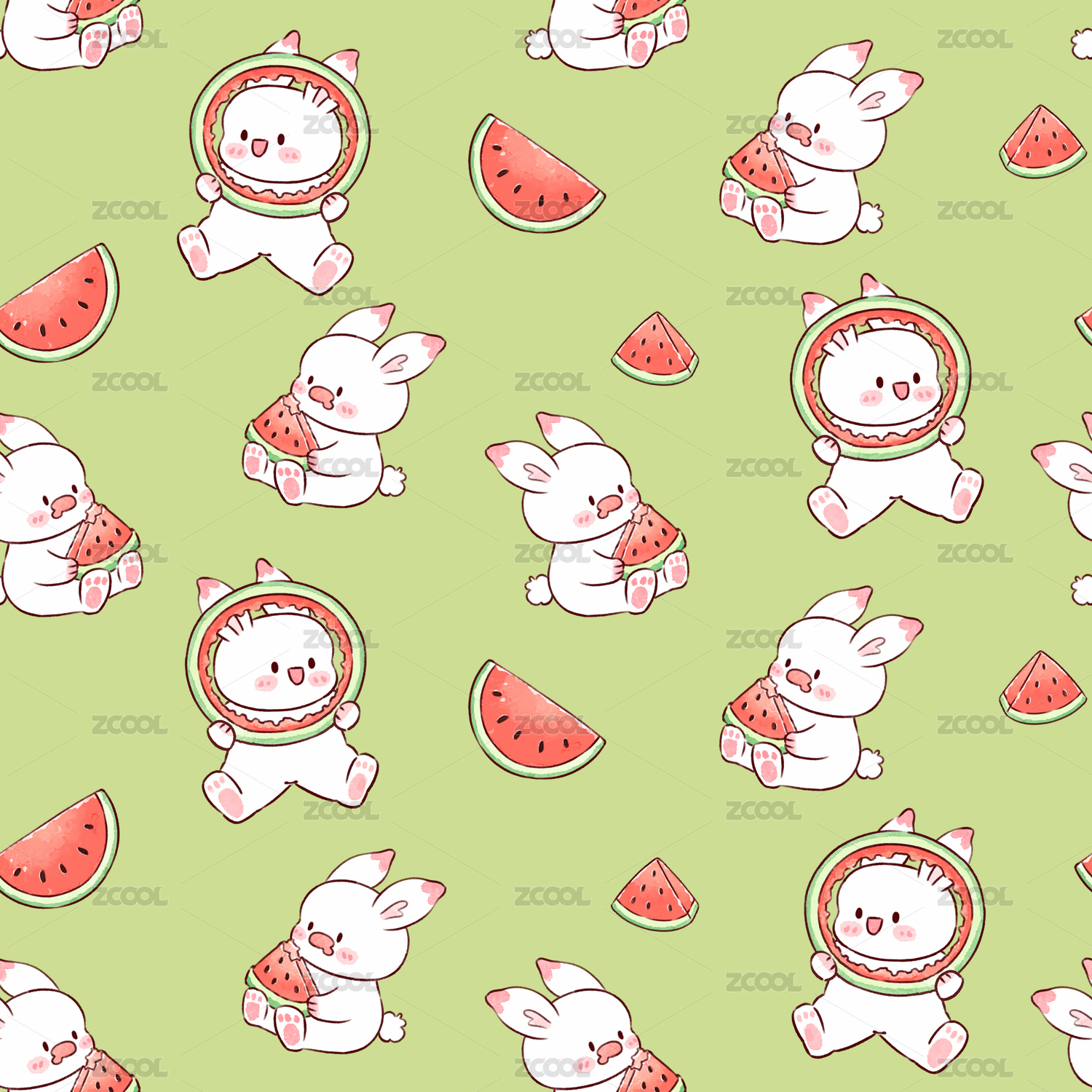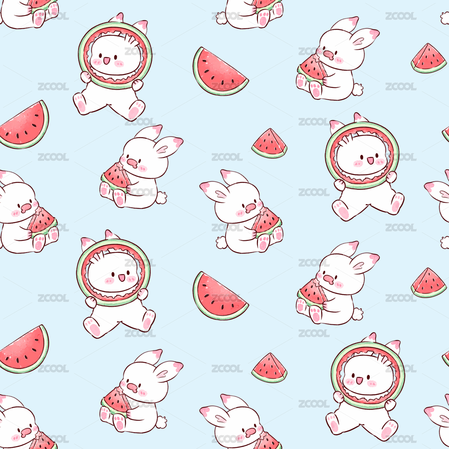 夏天吃西瓜的兔兔花型圖案1