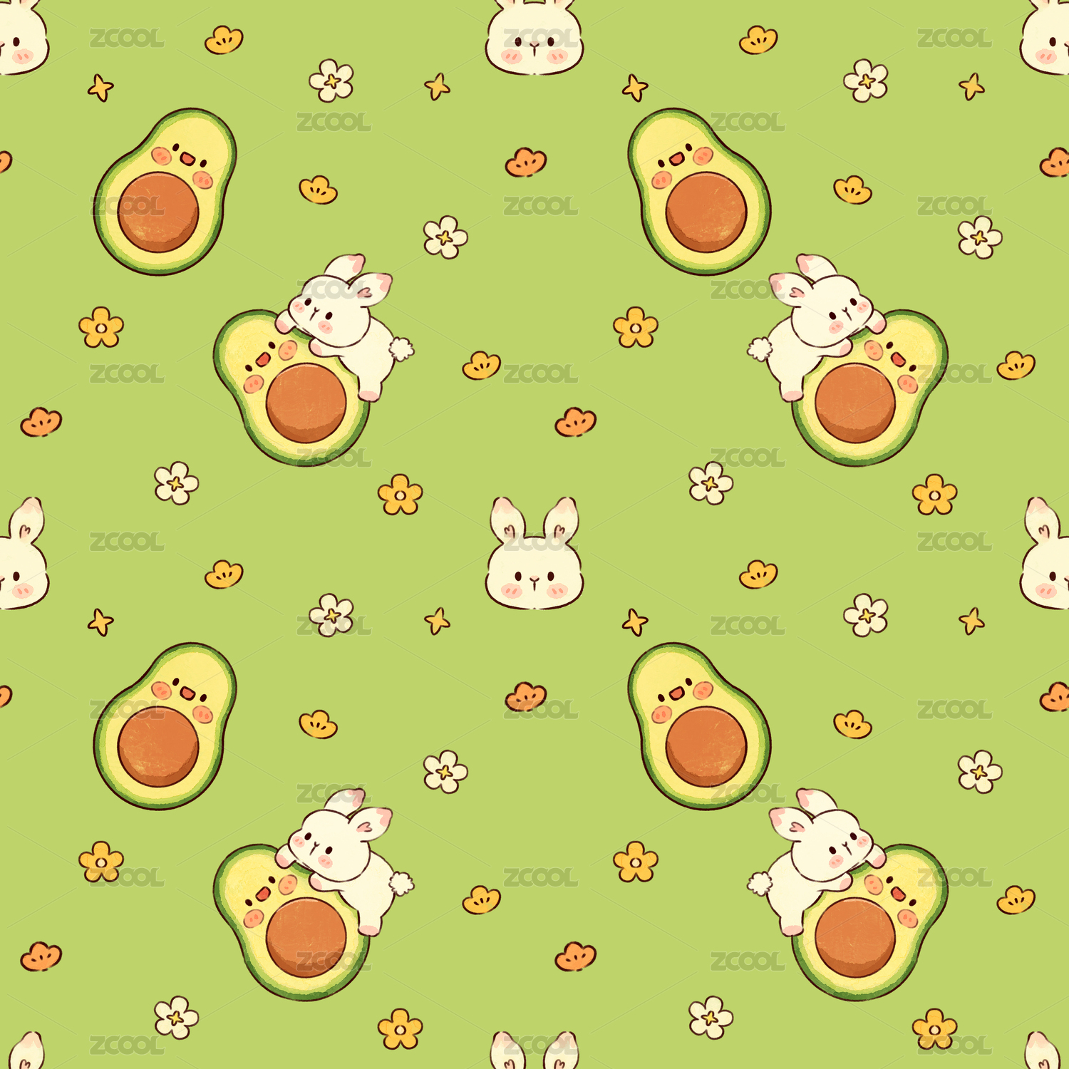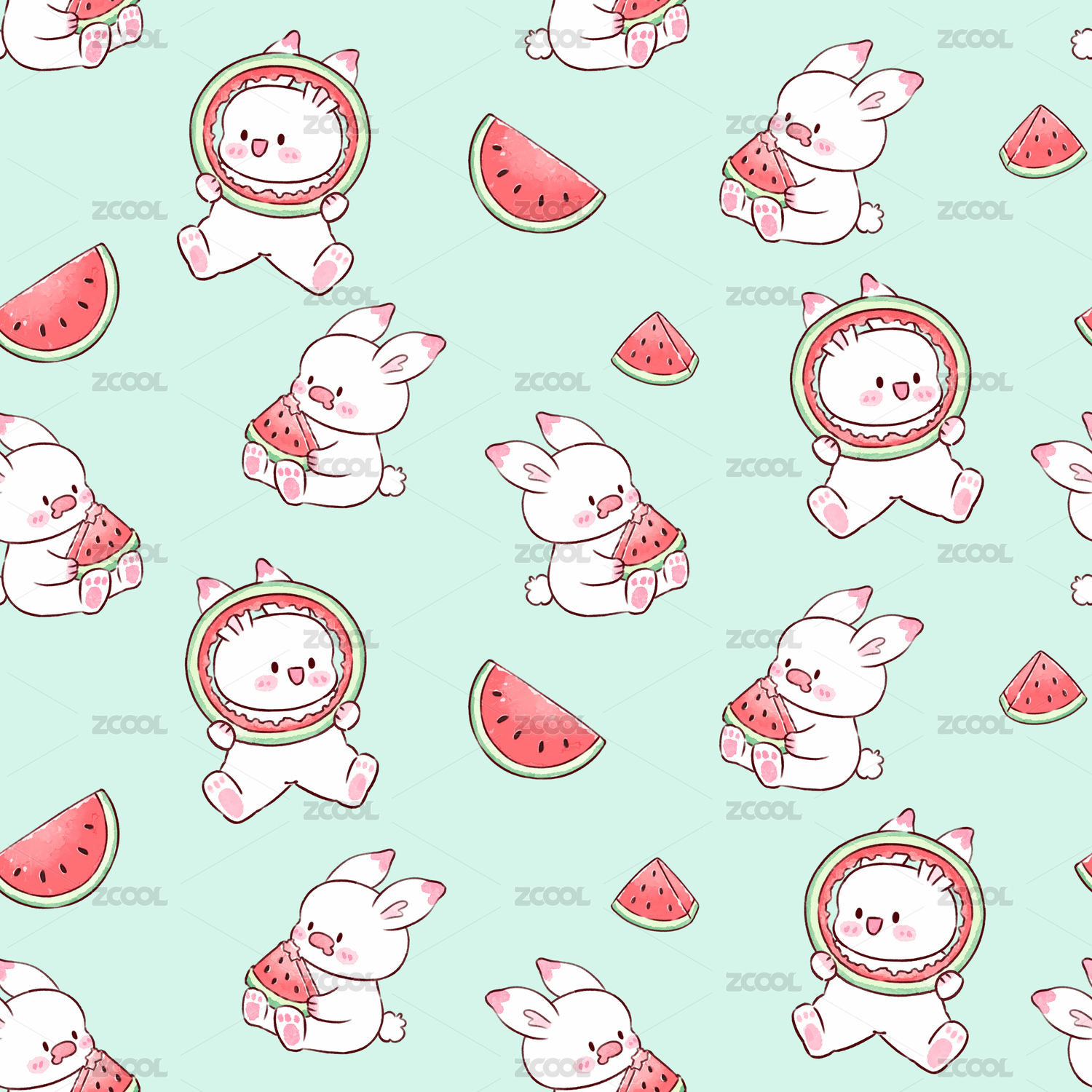 夏天吃西瓜的兔兔花型圖案2